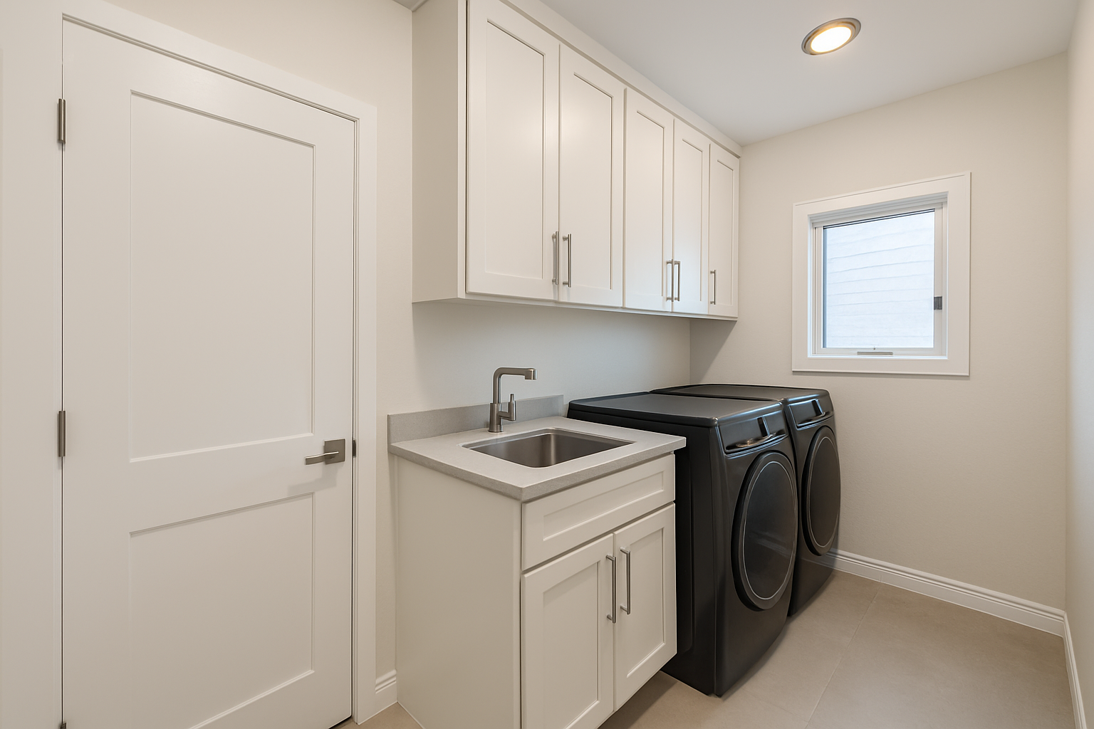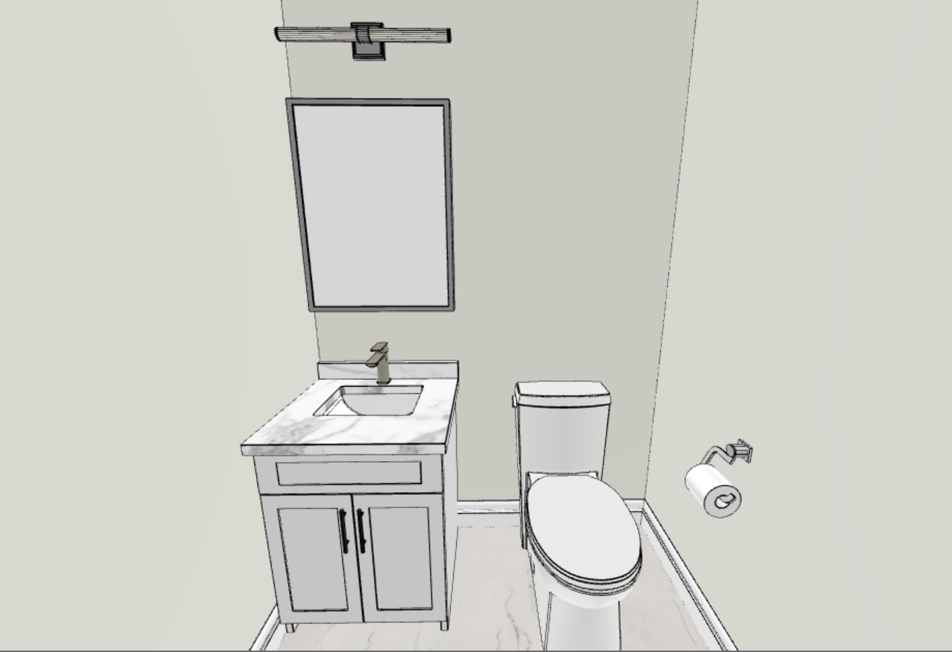 exterior shot render the poweder room that is 5 feet by 5 feet