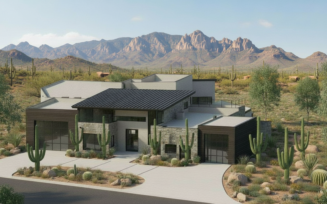 keep the landscaping and the background the same keep the structure of the home the same keep all of the roofs and fascia the same only change the exterior walls all to the stucco material that is on the rest of the house