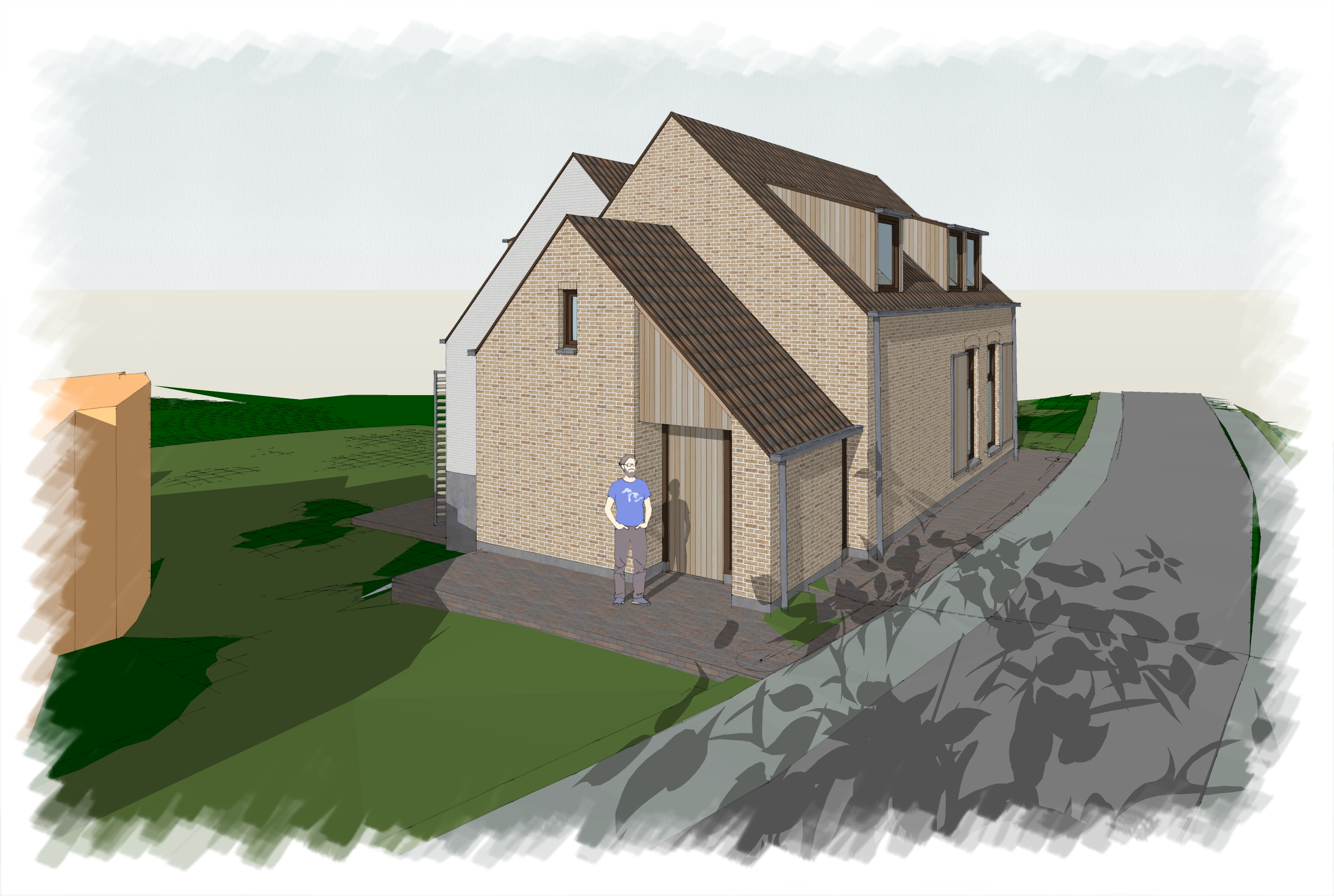 can you make a realistic render of this picture with in the background a pasture or meadow with a few cows