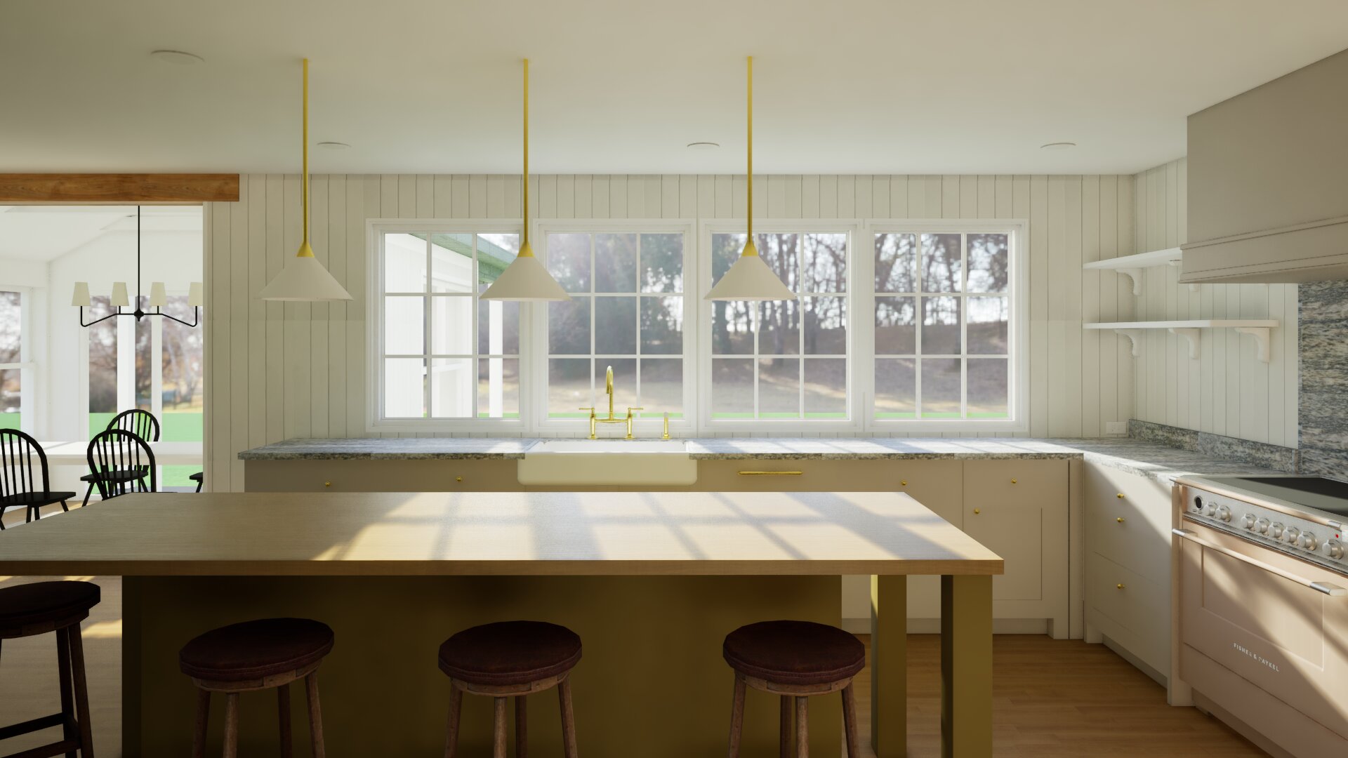 add dishes on the shelves and a few items on the counter