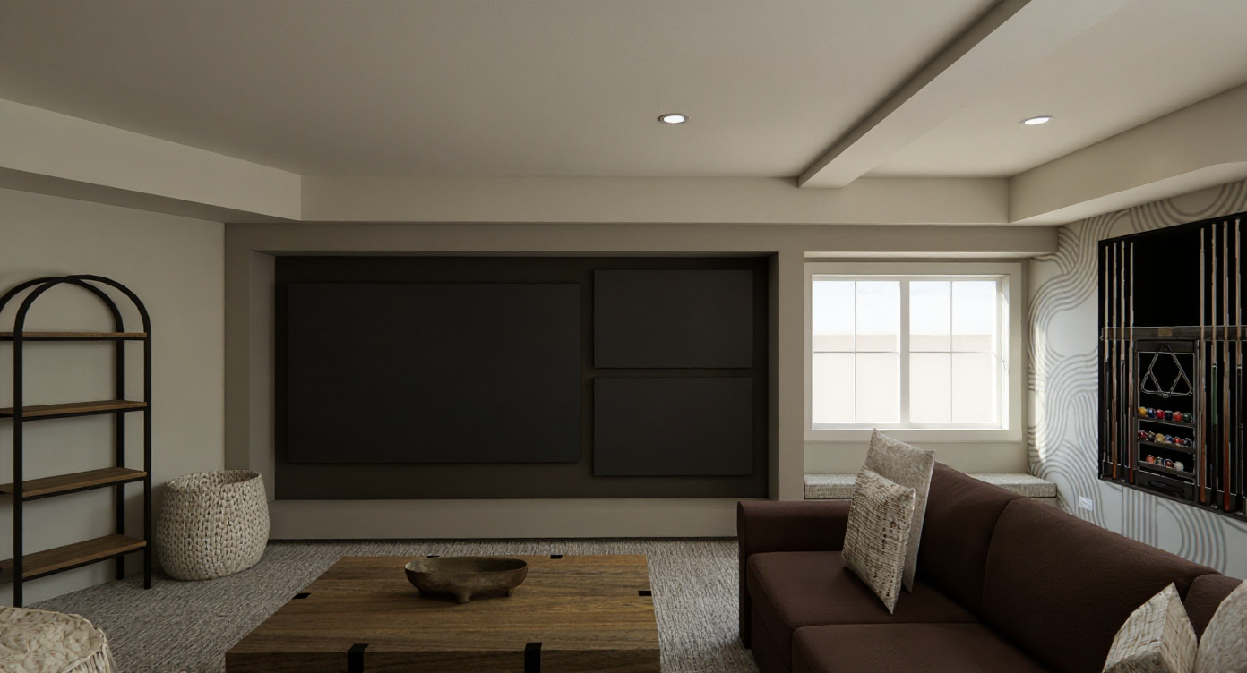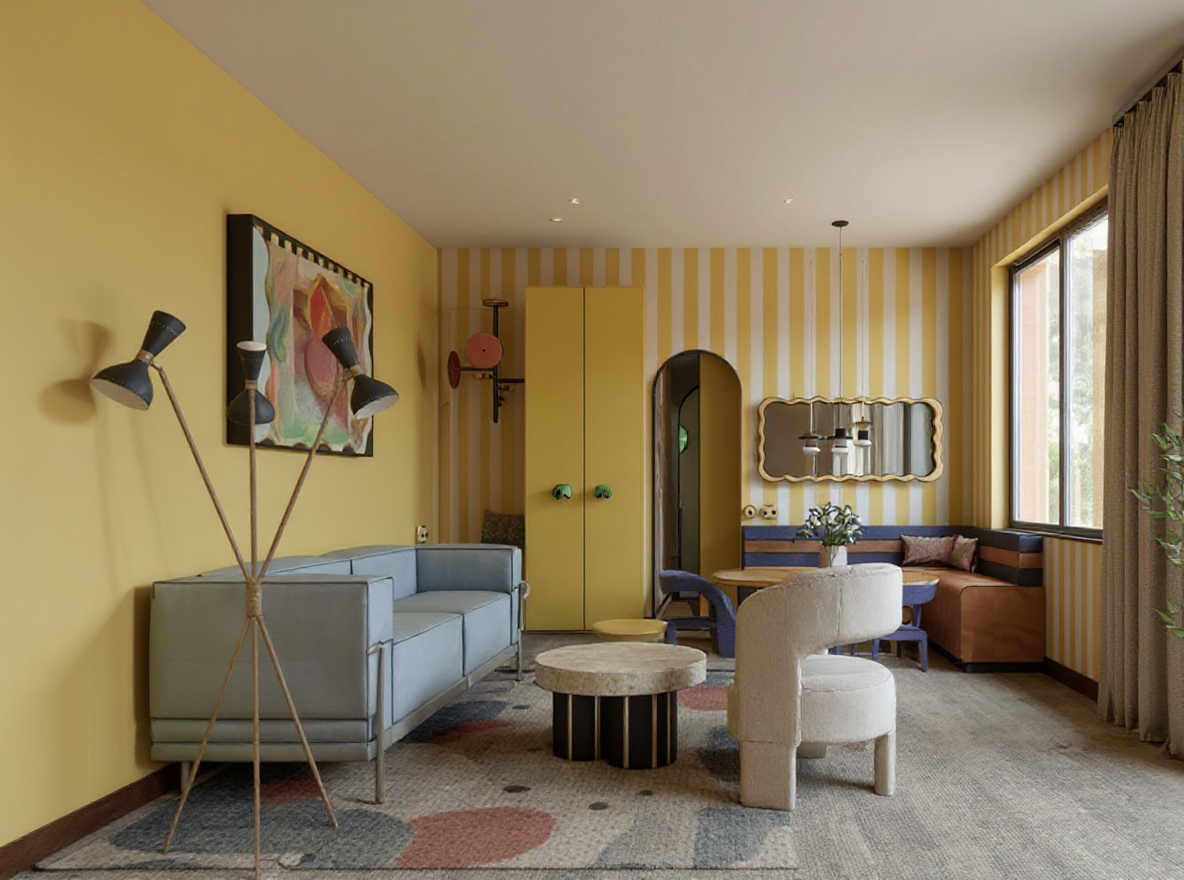 add some room lighting make the white walls crisp whille maintaining the colours of the other walls please make as photorealistic as possible add depth as well