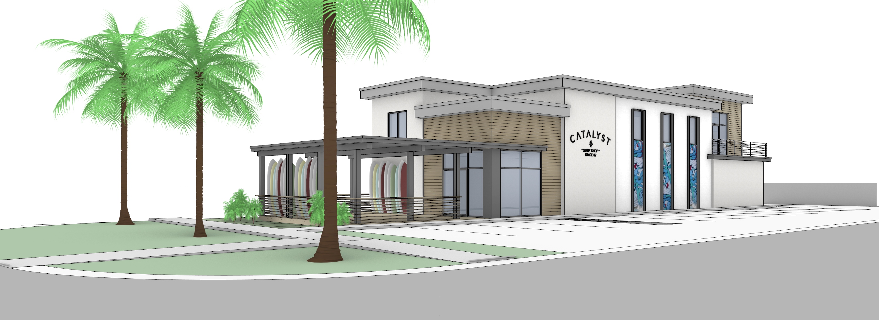 this is a surf shop make it a bright sunny day put a few cars in the parking lot add some people shopping on the deck