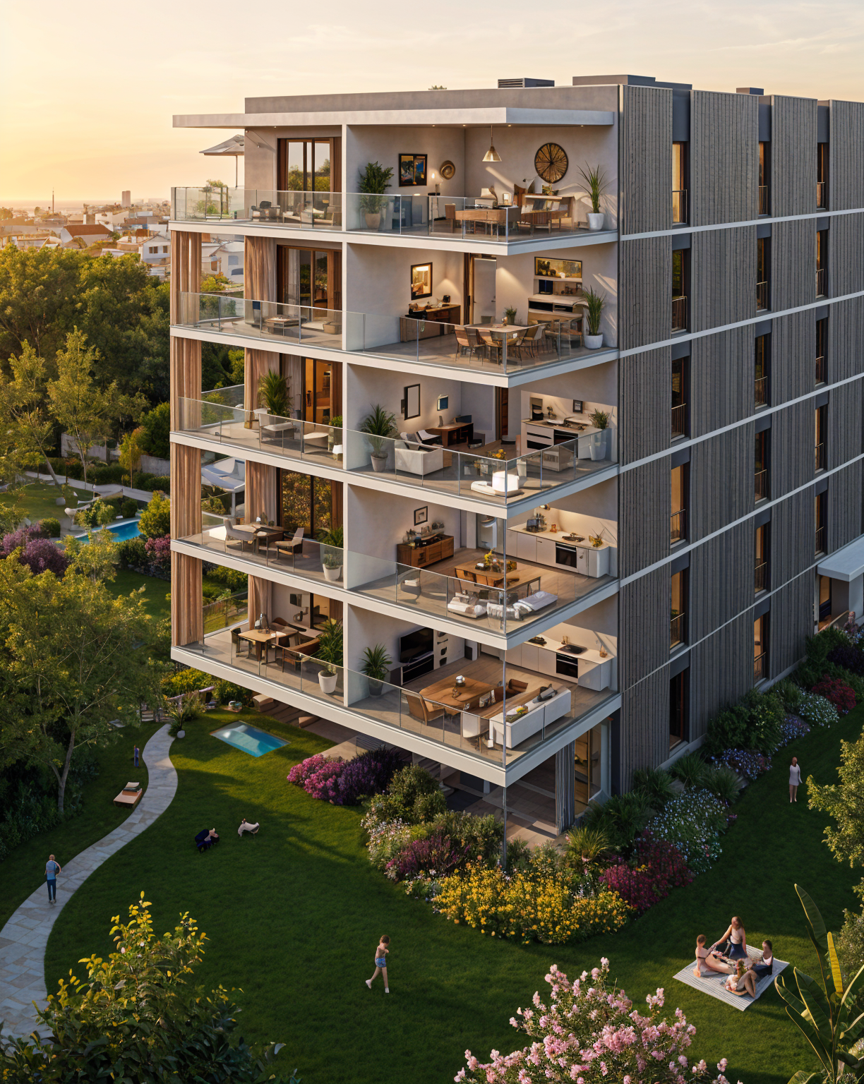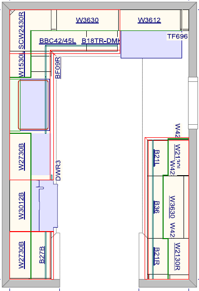 convert this floor plan into a realistic isometric 3d view of a full house show the space from an elevated angle with furniture walls and details visible white upper cabinets white counter with slight blue veining and light blue lower cabinets use the same furniture as shows on the plan do not change the orientation of the floorplan