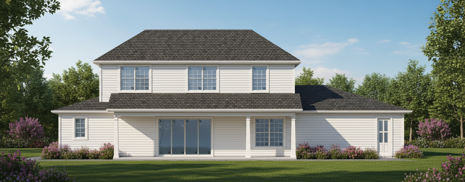 warm white kitchen with white oak floors on a bright sunny day