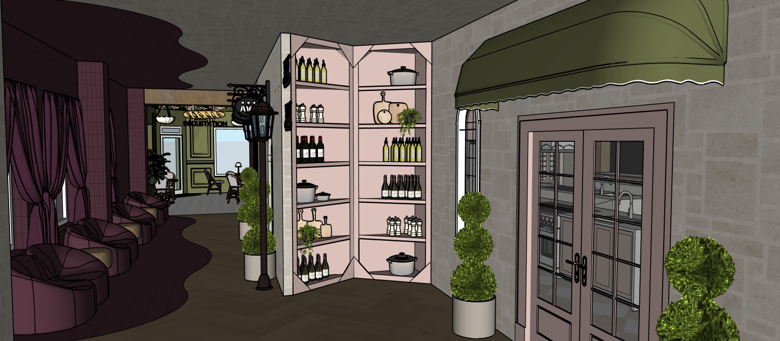 keep the colors shapes and textures the same the dusty pink shelf should look like an open menu