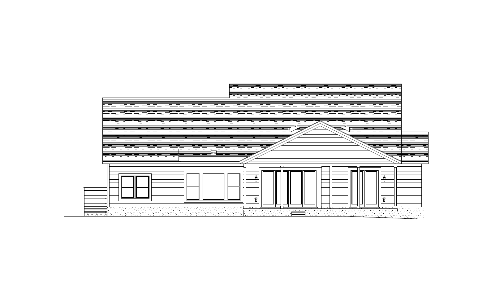 make this rear elevation photorealistic while keeping textures and architectural elements the same as selection add professional landscaping on a lightly wooded scene with good lighting that is in beaufort south carolina use the following colors and materials lap siding to be contented bcc1b4 in color corner boards to be white edece6 in color shingle roofs are to be certainteed dimensional shingles in moire black windows to be white in color window trim to be white edece6 in color fascia soffit gutter and downspouts to be white edece6 in color frieze boards are to be white edece6 in color exterior lights to be progress lighting east haven exterior lights black in color foundation to be poured wall tabby concrete sliding glass patio door to be white in color sliding glass patio door trim to be white edece6 in color porch columns to be white edece6 in color