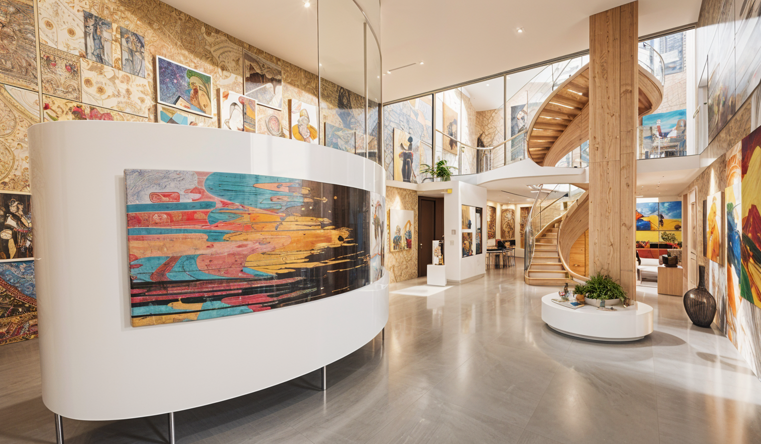 realistic interior view with soft artificial lighting