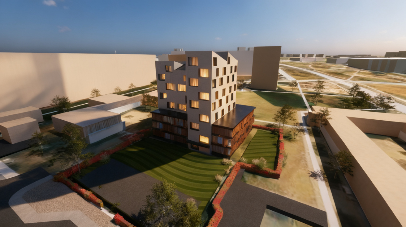 realistic image sunset light coming from the right side add rug under table add flowers on table put books on shelves decorative cream colored panels and trim on upper walls gothic arch between columns turn on interior lights remove daylight coming through windows make furniture upholstered show daylight through windows at doors on far left side