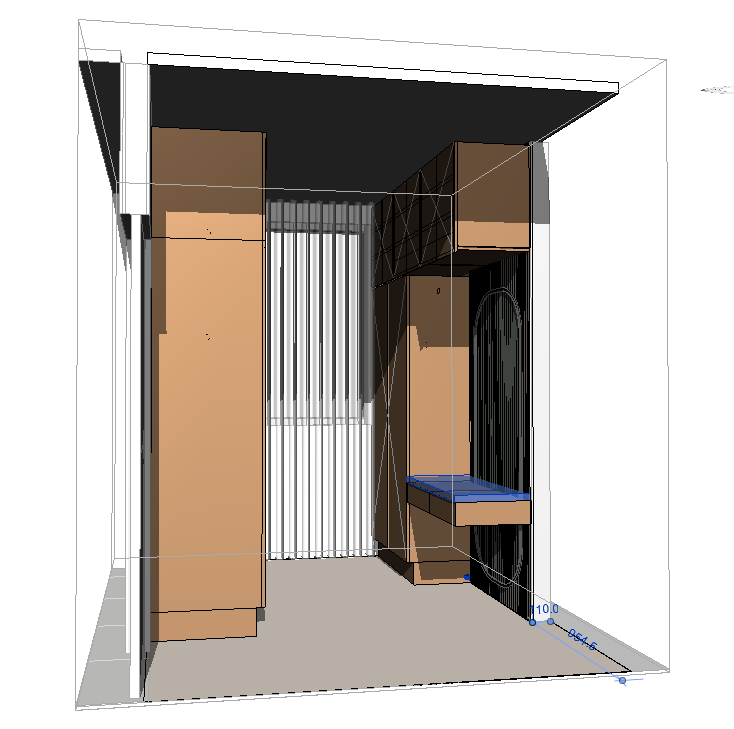 warm minimalist luxury walk in robe with light oak timber joinery full height wardrobe doors integrated warm strip lighting fluted timber details slimline shelving soft sheer curtains with diffused natural daylight floating vanity with clean linear drawers curved upholstered vanity chair in warm beige suspended oval mirror with backlighting soft cream carpet flooring refined modern detailing calm spa like atmosphere elegant residential aesthetic high end finishes photorealistic interior architecture style