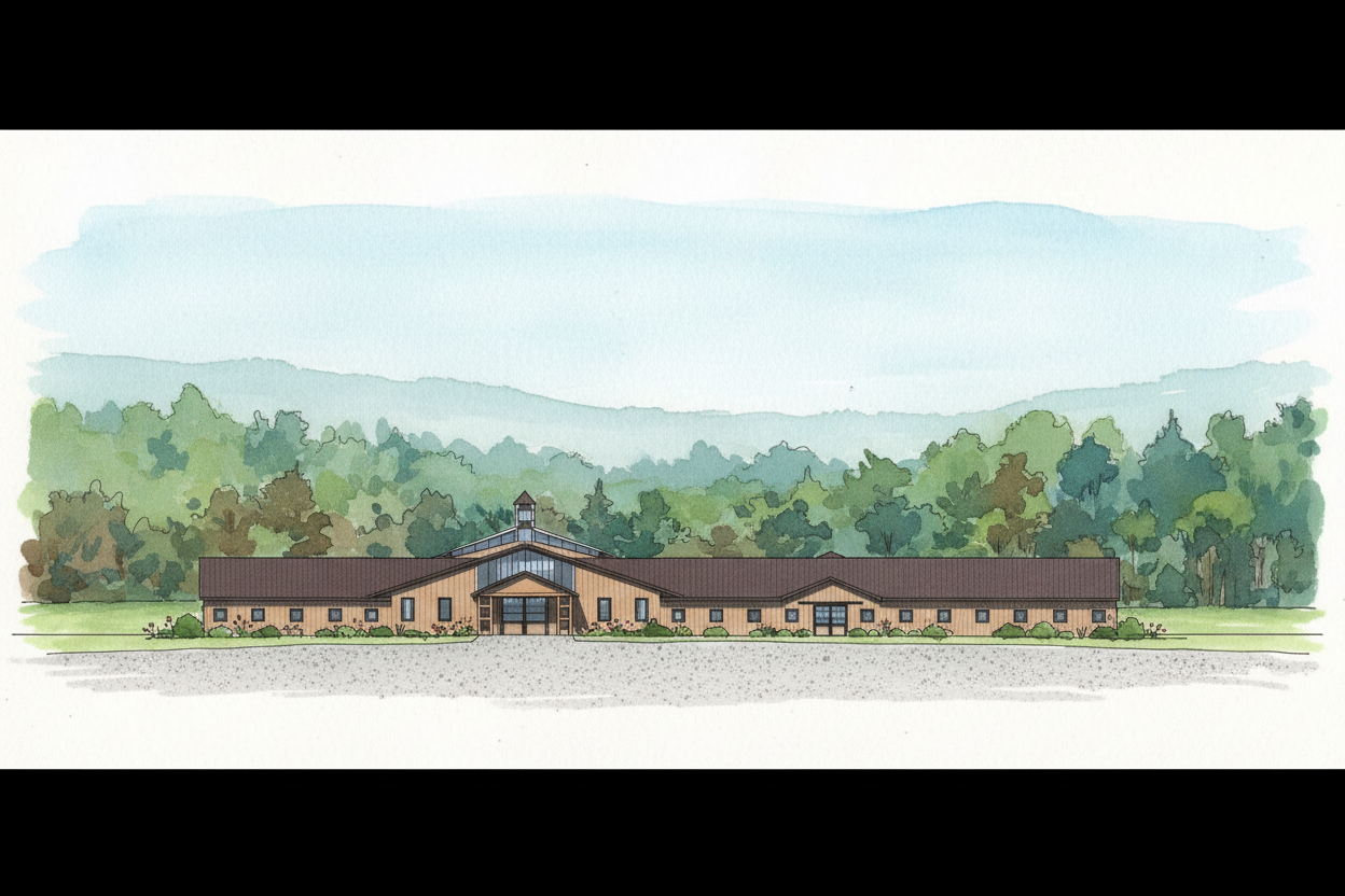 copic rendering that removes square windows and extend board and batten siding