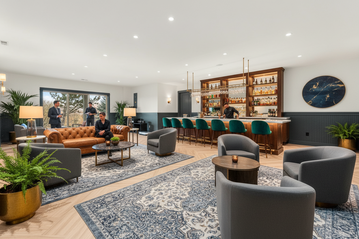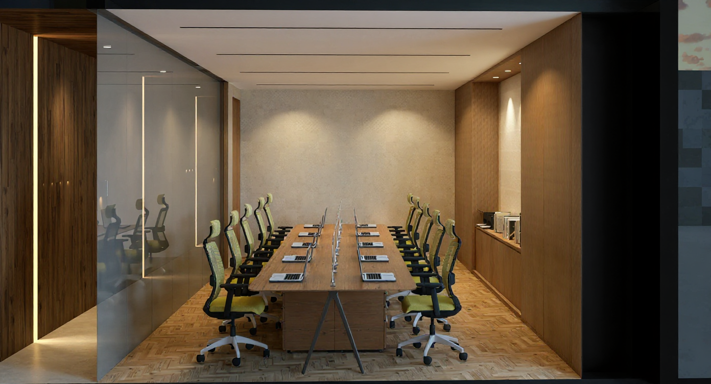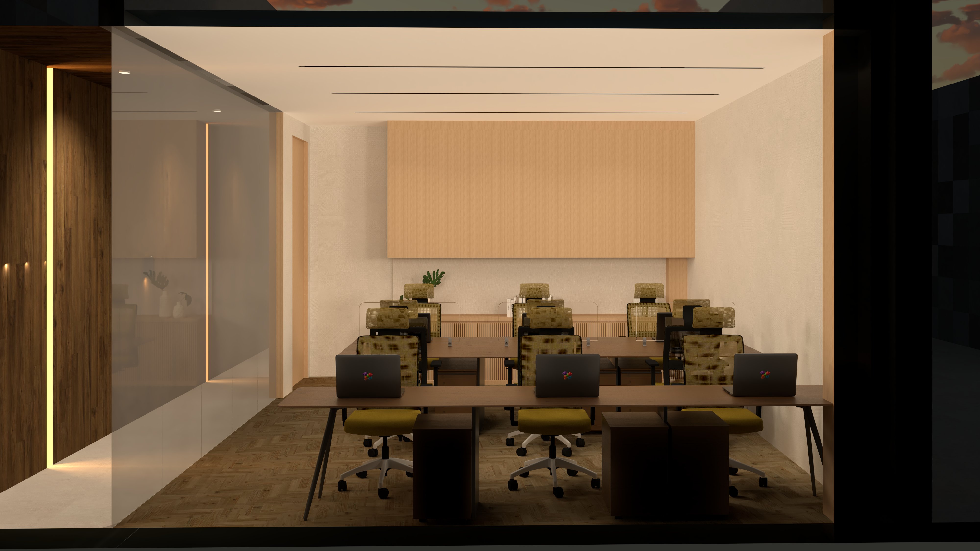 make realistic wall using soft beige paint left wall glass framelass and keep the layout