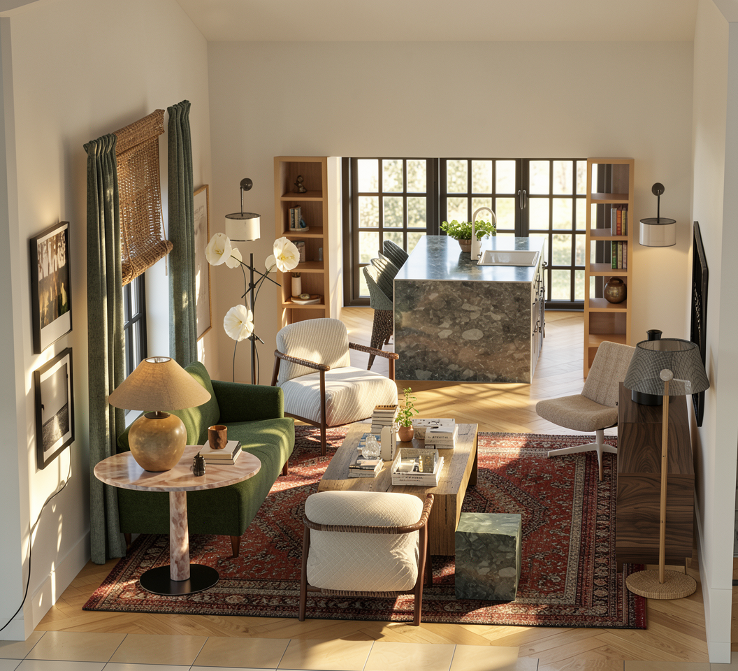 make a super faihful render from the image the wal ist creammy white and the cabinet ist lihgt olive grren