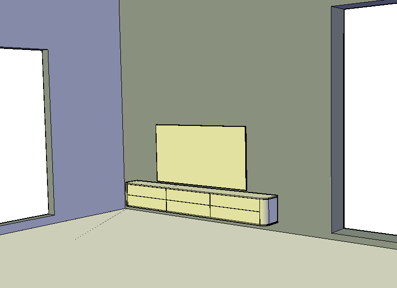 furniture in a light beige tone subtle led lightng oak wooden flooring black tv big windows