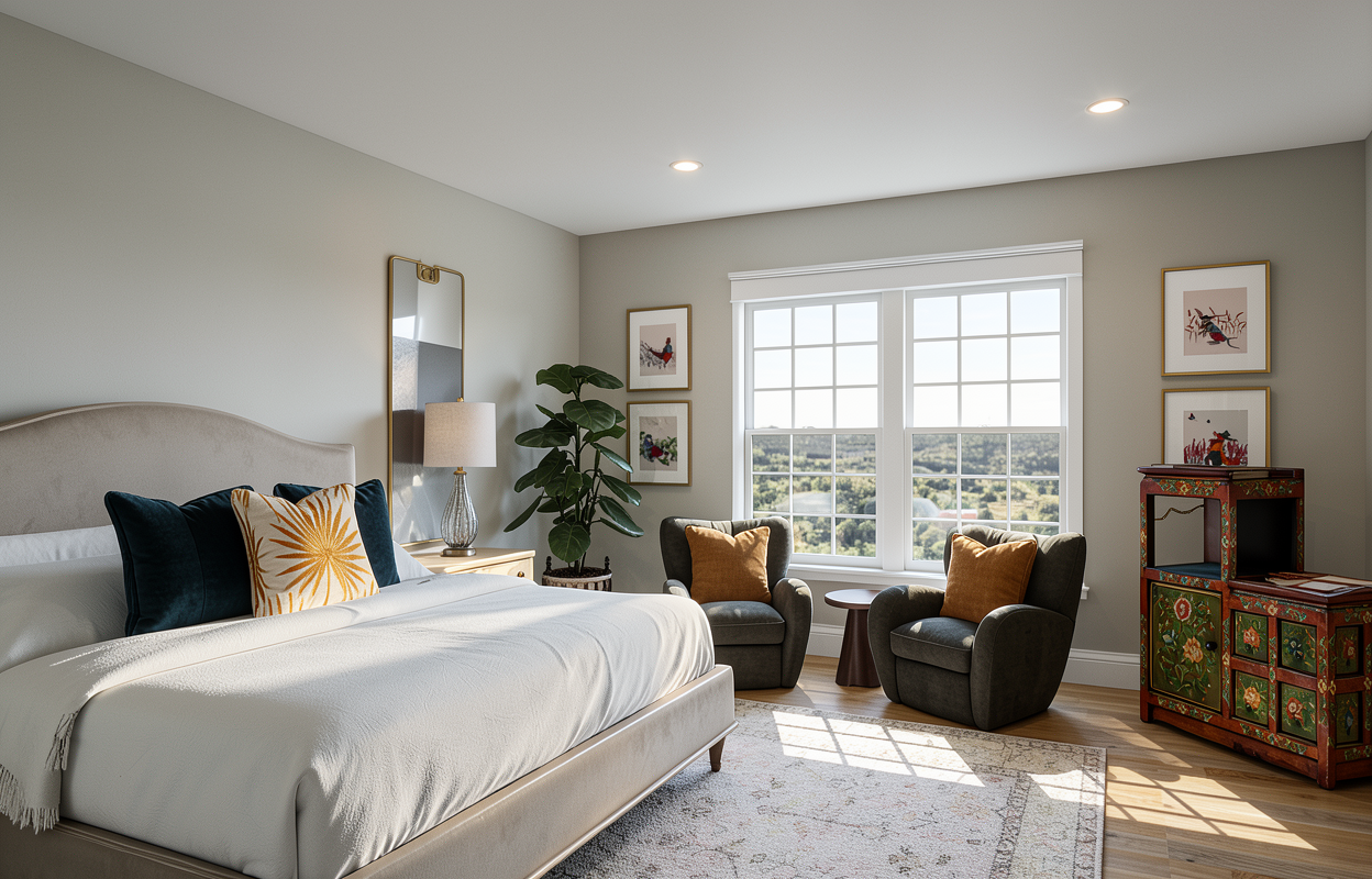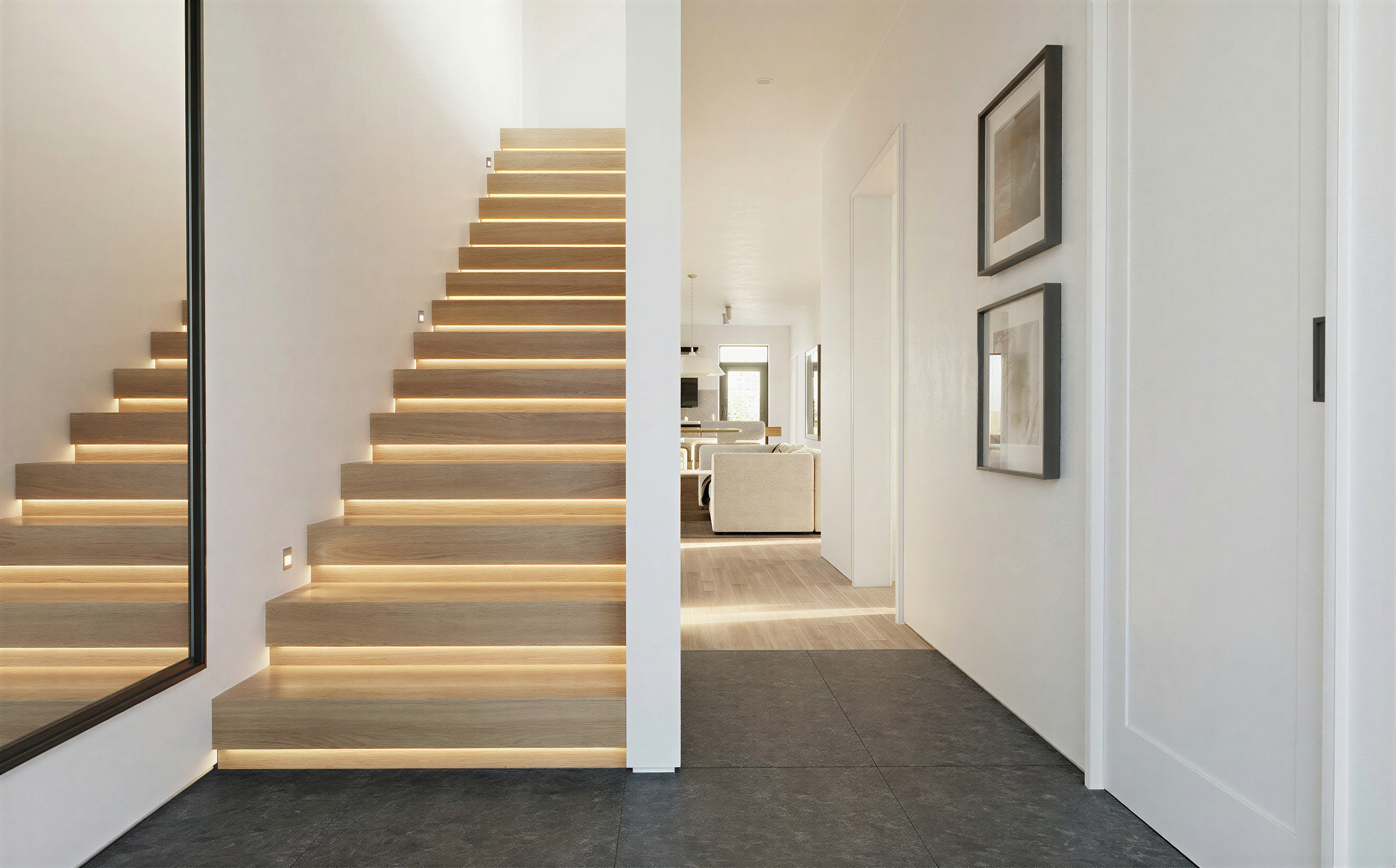 keep everything the same but change the dark gray tiles for something lighter and more neutral and natural looking in a small rectangular tiles not squared use cream gray marble needs to look modern