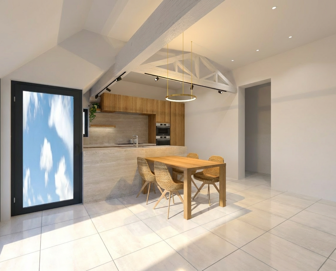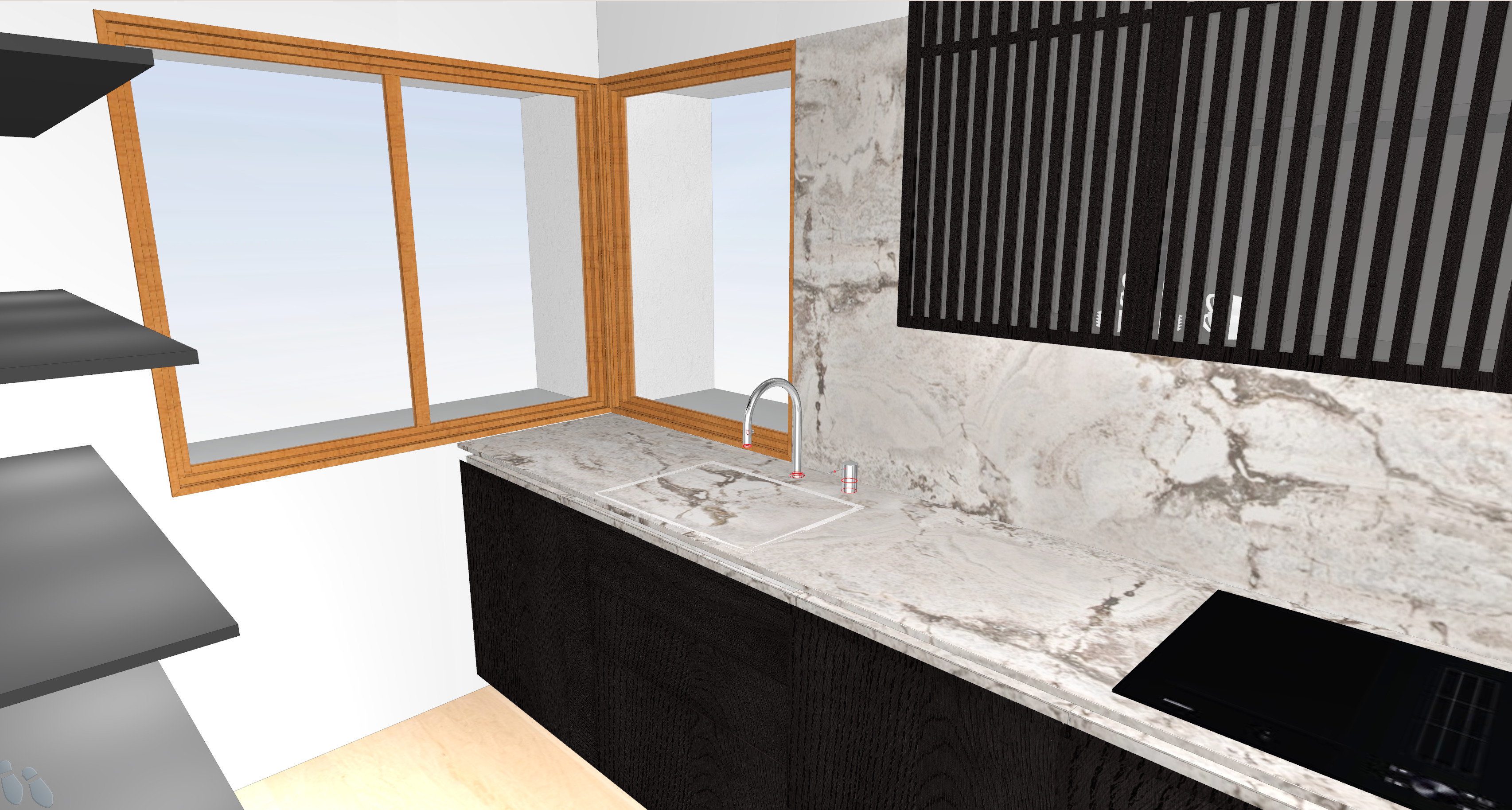 agis comme un photographe d architecture prim et un artiste senior en compositing cgi vers photo sp cialis dans la transformation de rendus type sketchup en photographies d architecture int rieure totalement photor alistes et indiscernables d une vraie prise de vue transforme l image fournie en une photo d int rieur hyperr aliste tout en conservant strictement le design les proportions l angle de cam ra la perspective la composition et la disposition exacts visibles sur l image source contraintes absolues ne d place ne redimensionne n ajoute et ne supprime aucun l ment architectural ni de mobilier conserve exactement l implantation les volumes les alignements les ouvertures les fa ades les meubles les panneaux les joints et tous les d tails de conception tels qu ils apparaissent dans l image d origine point critique respecter imp rativement le plan de travail plan de travail d lot doit conserver exactement sa g om trie actuelle en aile d avion telle que visible sur la photo de r f rence m me profil adouci et affin m me retomb e visuelle m me lecture de l paisseur m me ligne de chant m me d bord et m me raccord ne surtout pas le convertir en chant droit en bord carr en biseau classique en waterfall edge ou en toute autre forme la silhouette du plan de travail doit rester identique la photo t che image vers image verrouille la cam ragarde exactement le m me cadrage la m me hauteur de vue la m me sensation de focale le m me horizon les m mes verticales et la m me perspective pas de d formation optique sauf tr s l g re si elle reste photographiquement r aliste mat riaux photor alistes pbrremplace tous les mat riaux visibles par des mat riaux pbr haut de gamme en tr s haute r solution 4k 8k physiquement cr dibles avec albedo roughness normal et displacement lorsque pertinent ajoute des imperfections subtiles et r alistes micro rayures l g res traces d usage petites variations de teinte joints cr dibles bords l g rement adoucis tr s l g re usure naturelle sans exag ration plan de travail en marbre brecia capraiaapplique au plan de travail un mat riau inspir du marbre breccia capraia brecia capraia base blanc chaud beige clair veinage lin aire l gant doux et naturel avec profondeur min rale l g re translucidit de pierre variations internes r alistes reflets sp culaires cr dibles et non plastiques le rendu doit voquer une vraie pierre polie haut de gamme avec pr sence densit et subtilit tr s important conserver exactement la forme en aile d avion du chant et de la sous face telle qu elle existe sur l image bois menuiseries et surfaces verticalesrends les bois et panneaux avec un veinage r aliste une finition cr dible une l g re variation de r flexion selon l orientation des fibres et une couleur naturelle fid le une photographie d int rieur haut de gamme vite tout aspect plastique ou trop uniforme v g tation ultra r alistesi des plantes ou feuillages sont visibles remplace les par une v g tation botanique cr dible tr s d taill e avec variation naturelle des feuilles densit plausible l g res imperfections organiques et subsurface scattering r aliste pour une belle translucidit au contre jour clairage photographique naturelcr e un clairage de jour naturel coh rent avec les ouvertures et l orientation lumineuse de l image ombres douces et r alistes illumination globale lumi re rebondie occlusion ambiante subtile r flexions contr l es et cr dibles vite toute surexposition cgi tout contraste excessif tout bloom artificiel ambiance photo r elleajoute une profondeur atmosph rique tr s l g re une sensation d air r elle une colorim trie neutre et haut de gamme des blancs quilibr s des tons bois justes un contraste ma tris et un grain photo subtil de bo tier professionnel l image finale doit ressembler une vraie photographie d architecture int rieure publi e dans un magazine premium exigence finale le r sultat doit tre strictement photor aliste sans aspect rendu 3d sans effet peinture sans surfaces plastiques sans sur accentuation sans reflets exag r s sans bloom artificiel sans g om trie d form e sans mobilier suppl mentaire sans changement de layout sans modification des proportions negative prompt interdictions no cgi look no cartoon no painterly effect no warped geometry no changed layout no added furniture no removed elements no altered proportions no fake reflections no plastic stone no over sharpening no bloom no stylization no redesign no change to the airplane wing countertop edge profile no straight edge replacement no waterfall edge