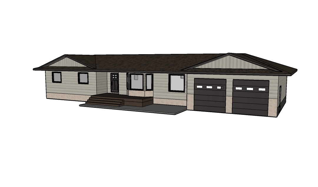 make this look photorealistic with some natural light and a driveway in front of the garage
