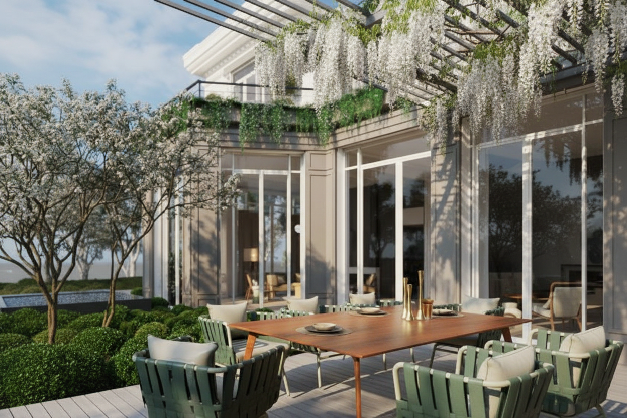 enhance the realistic texture and morning mist lighting maintain the elements material and angle of the picture