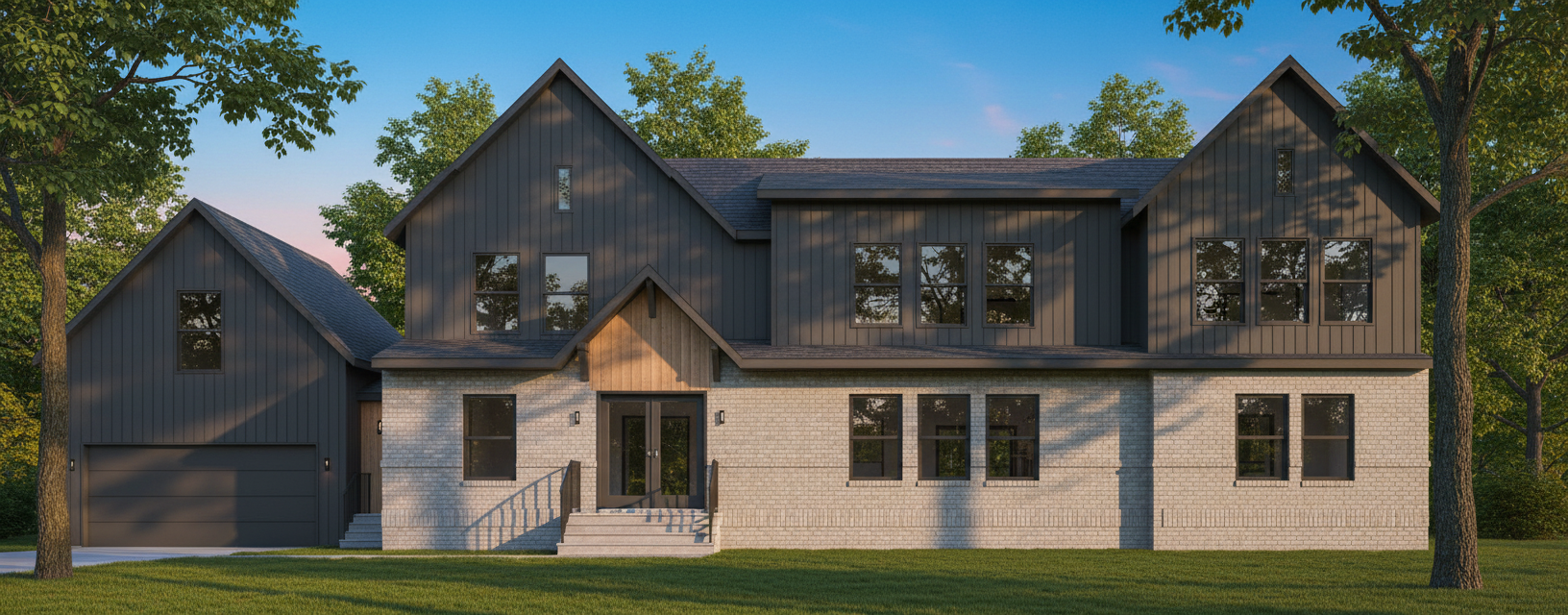 fai una pensilina con struttura in legno massello color noce e puntoni di legno contro il muro della casa la pensilina va posiziona sotto al marcapiano orizzontale grigio tra piano terra e piano primo dimensionata di 4 metri in larghezza e 2 metri di profondit verso di noi come riferimento considera che la porta con la tenda larga 120 cm la pensilina deve avere copertura in coppi di laterizio e canale di gronda marroni scuri senza pluviali