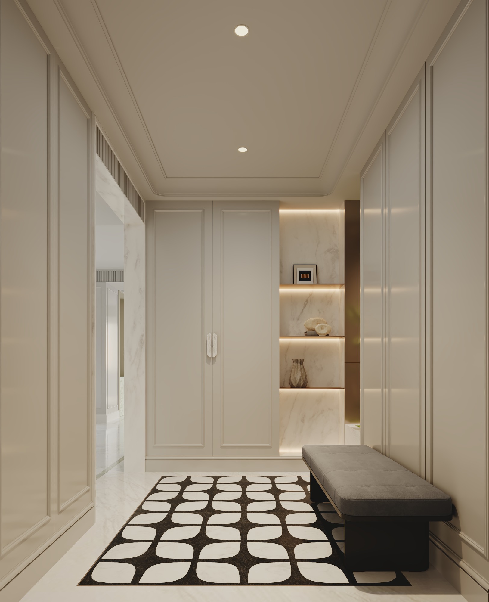soft interior lighting at 3500k with no natural lighting wall panels in white colour