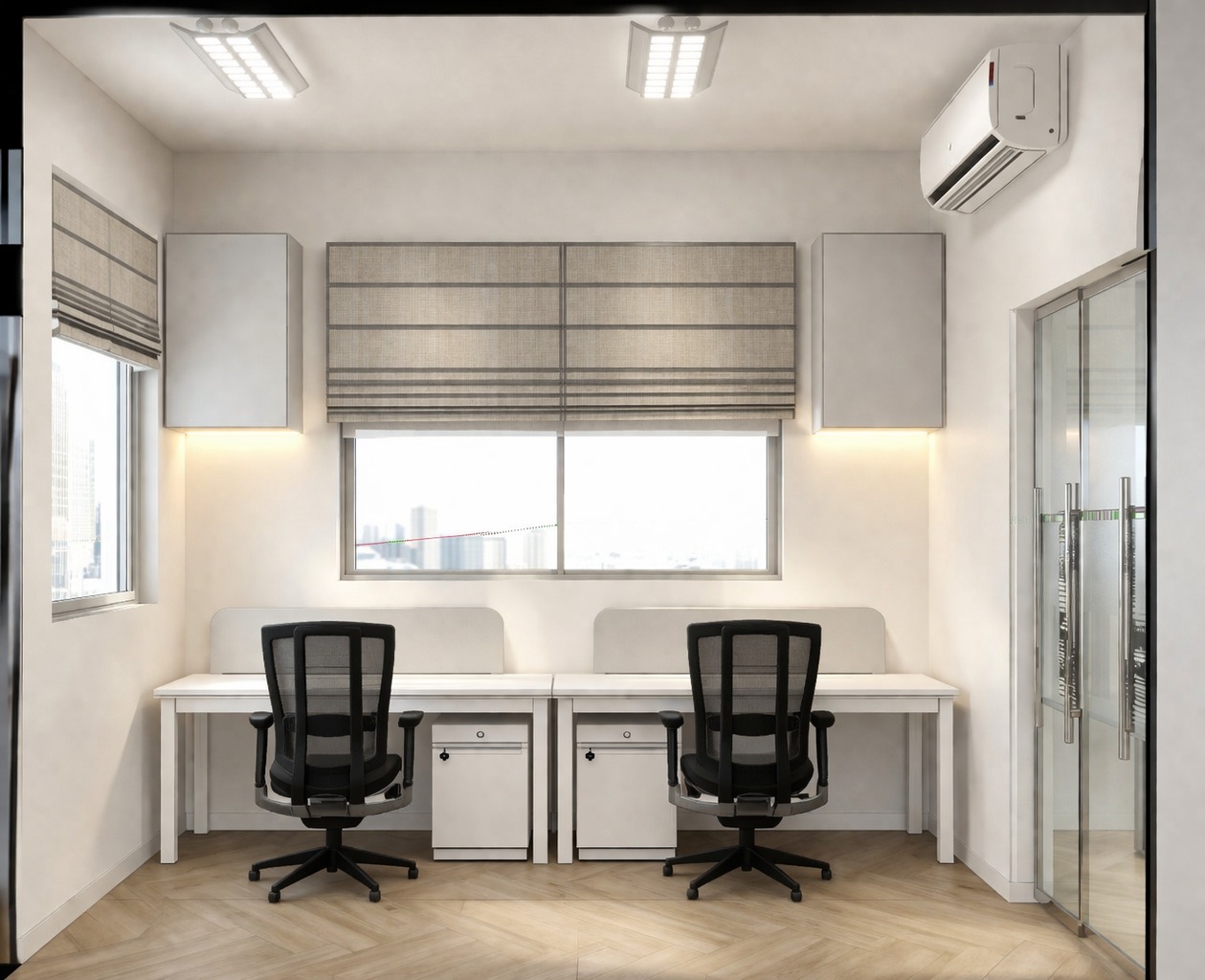 could you please change window frame to brown aluminium frames and replace the blinds with korean blinds