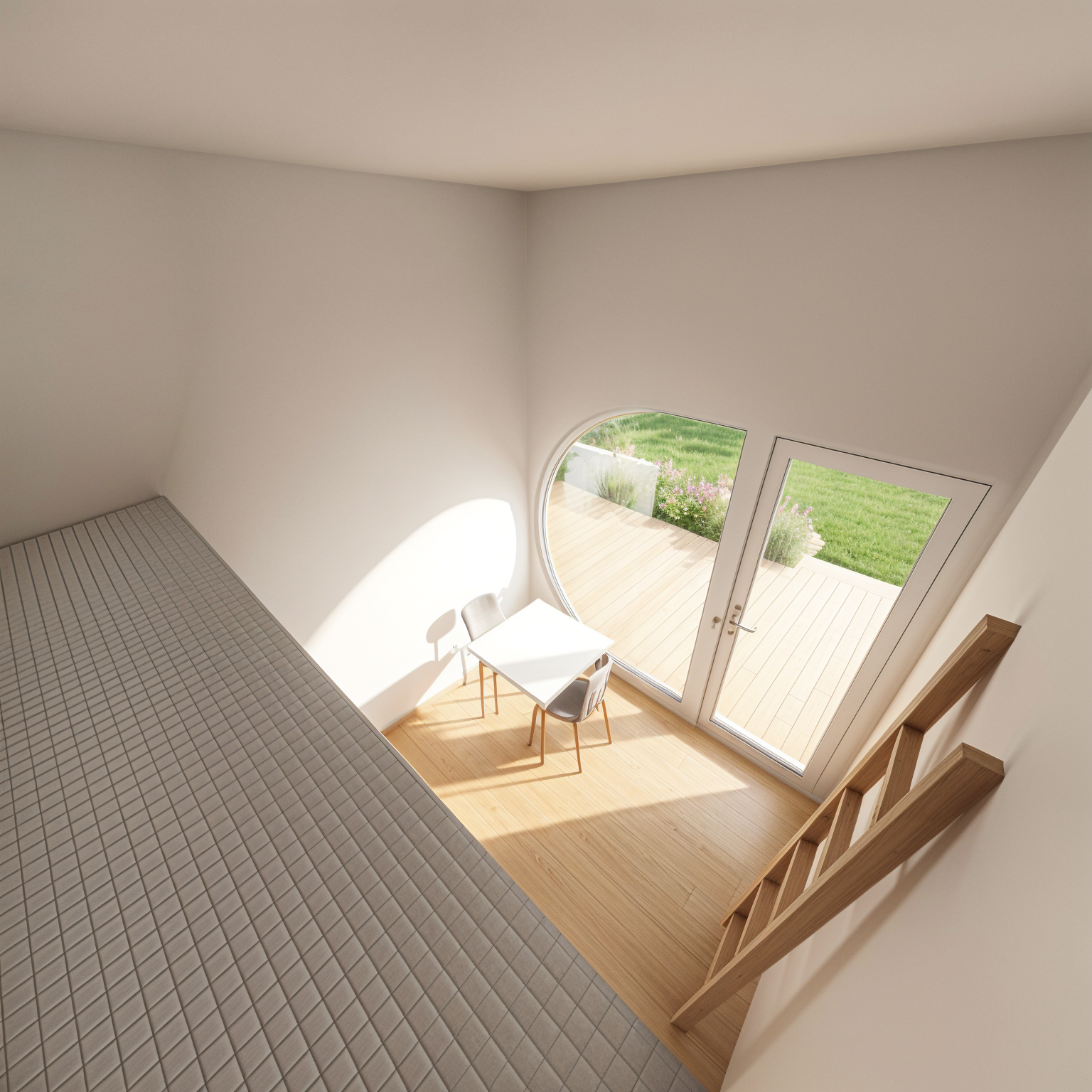 add a porous screen behind the banquet seating that curves around it starting from the middle of the seating towards the right the screen is made of timber panels keep the aspect ratio and perspective of the original image the image should be in landscape format