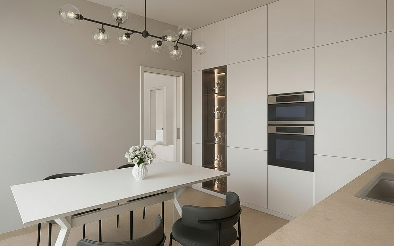 usa il vetro fum come top del tavolo e cambia il colore delle gambe del tavolo con un colore metallico