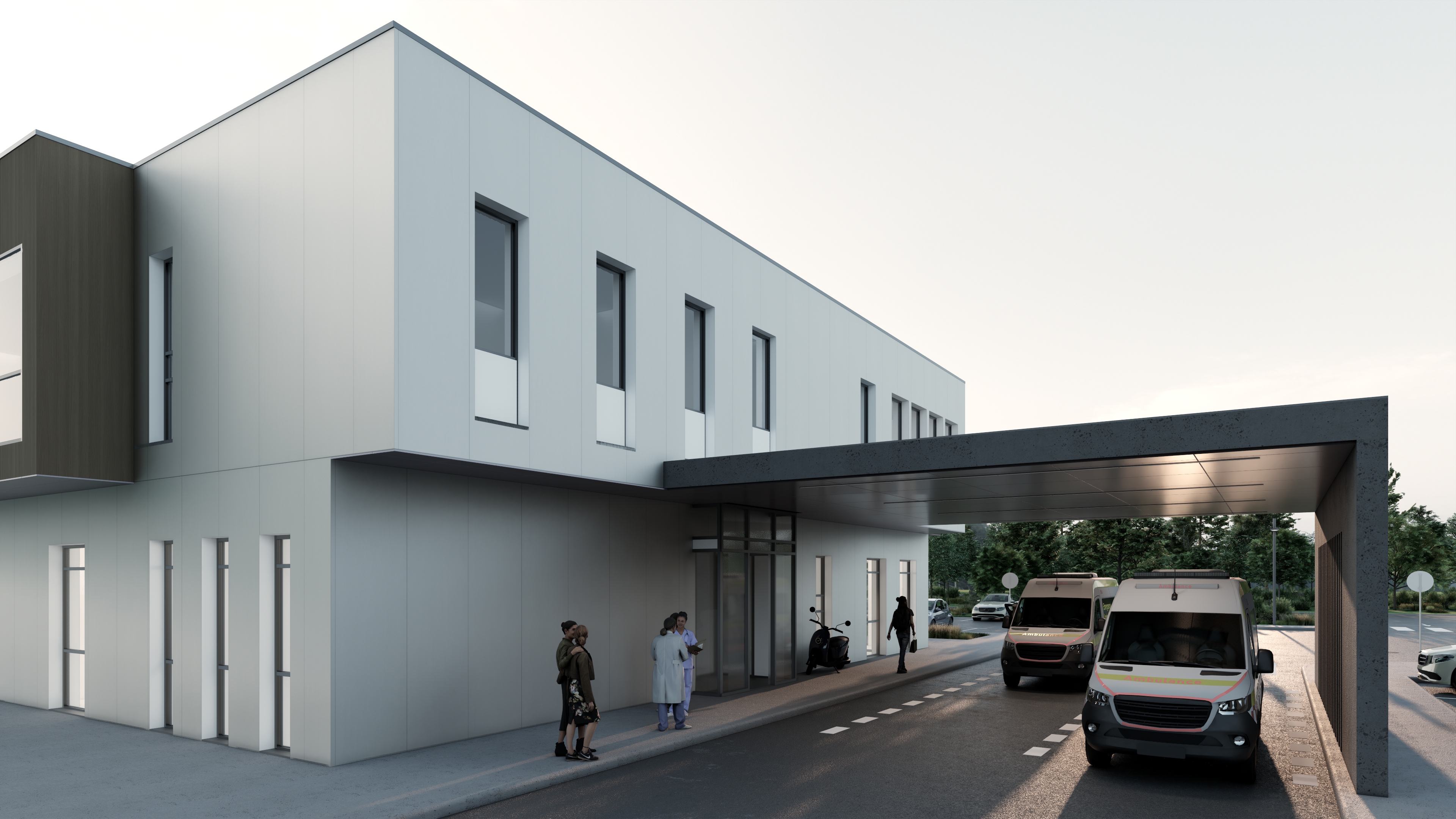 spring cosy sunny day clouds in the sky few white petals on the trees keep the colours of the building