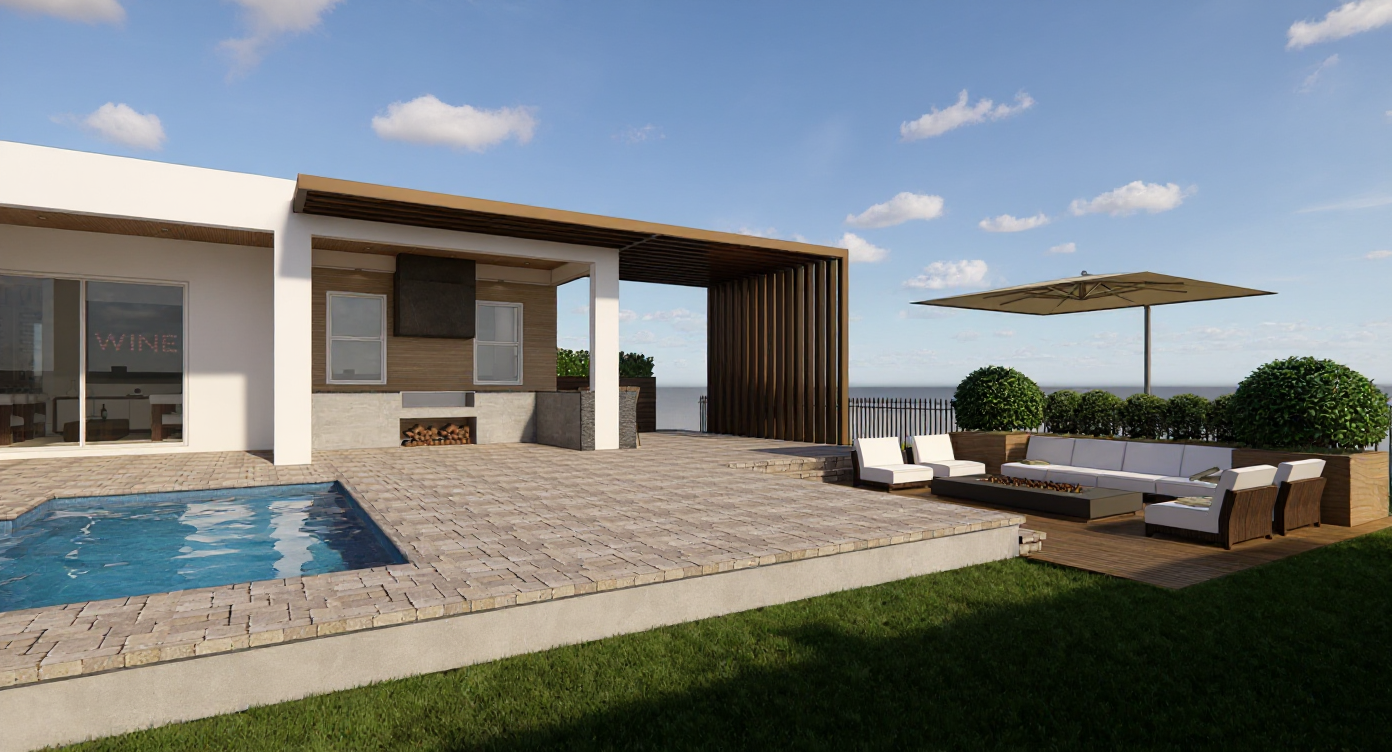 update the color palette of this golf course club house the stucco walls should be very pale slate grey