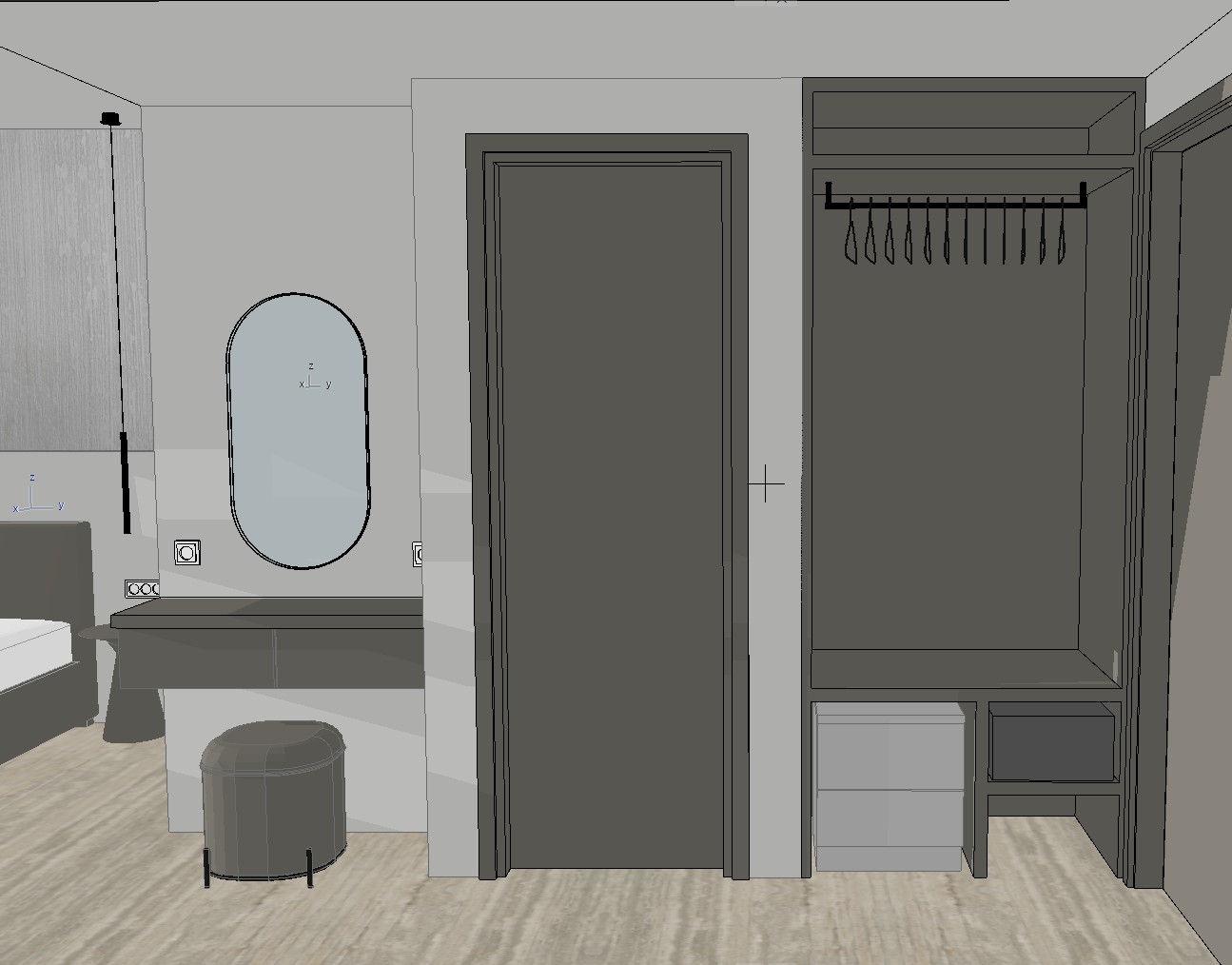 high quality led linear light above hanger floor travertine matte render two bathrobes