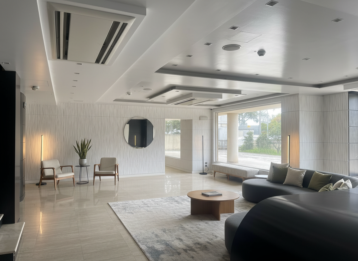 very light white oak modern kitchen with stainless steel counter tops and island with black hob add some simple contemporary items of kitchen ceramics and glassware some small plants to the shelves and counters