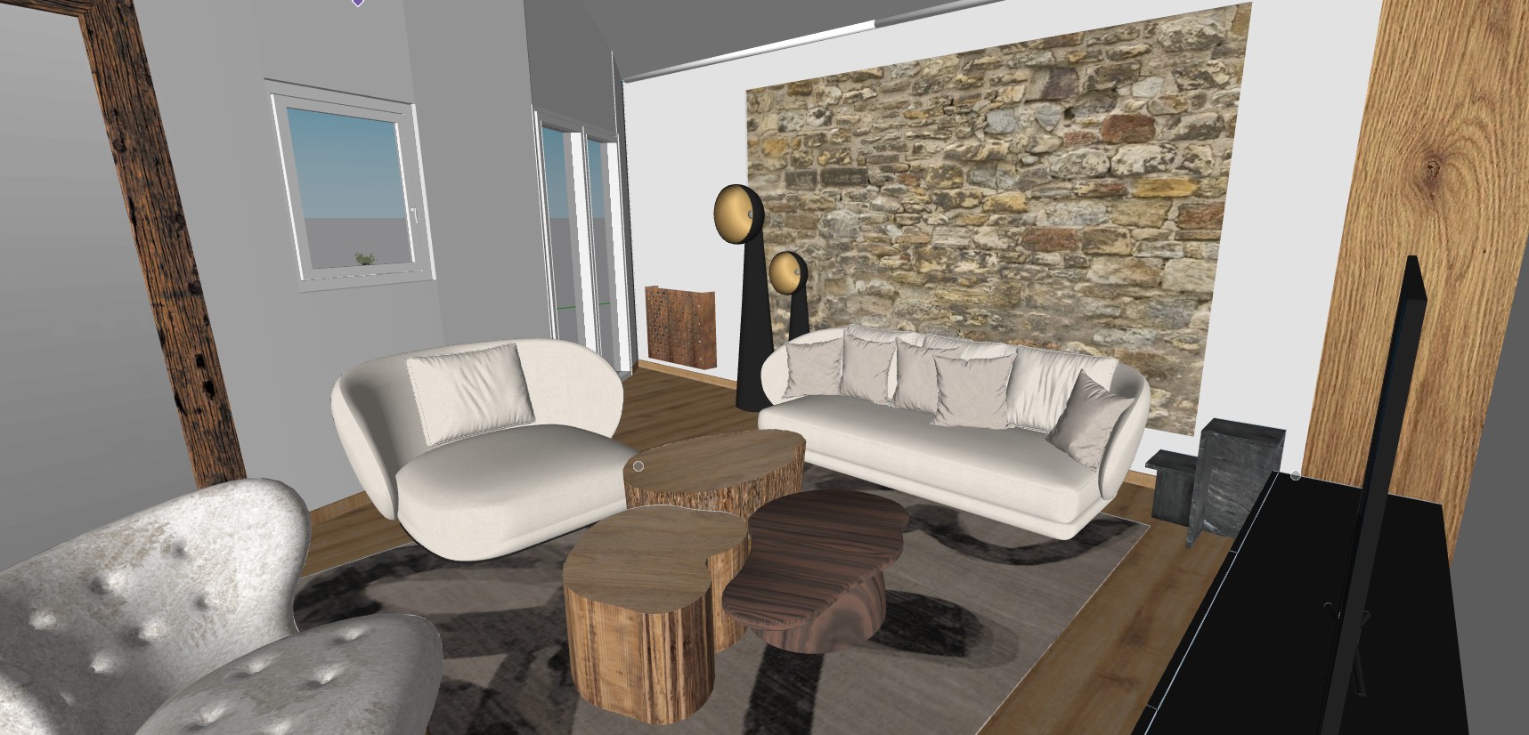 en el muro de piedra natural poner luz led enmarcando el cuadro colocar persianas blancas para dar la sensaci n que se pierden en el muro en la ventana chica y en la ventana grande tambi n y generar una hambientacion calida