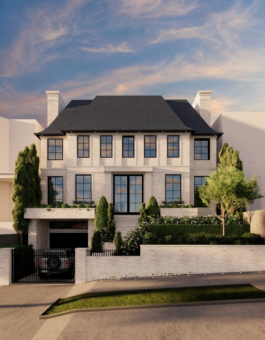 create a covered front balcony wrapped around the house and covered by soffit overhangs
