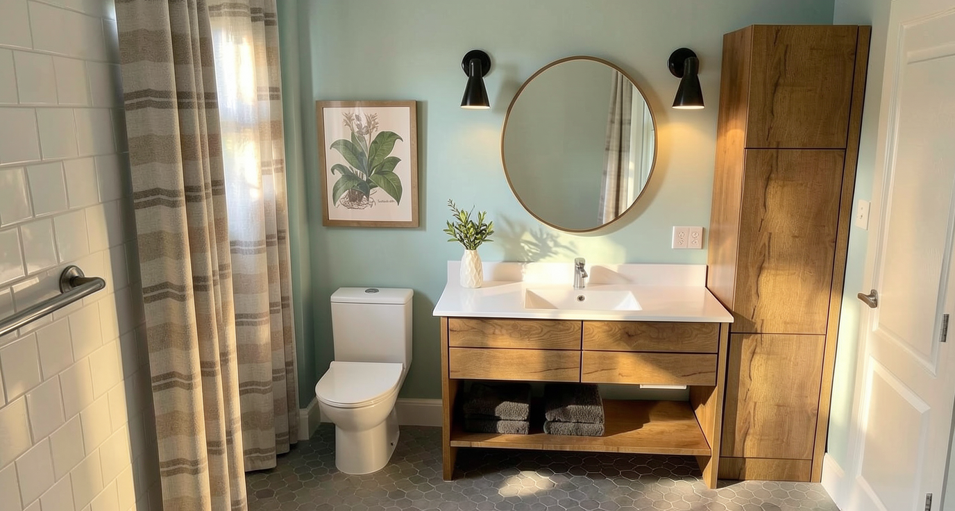 make this visualisation of bathroom more realistic especially textures there is no windows