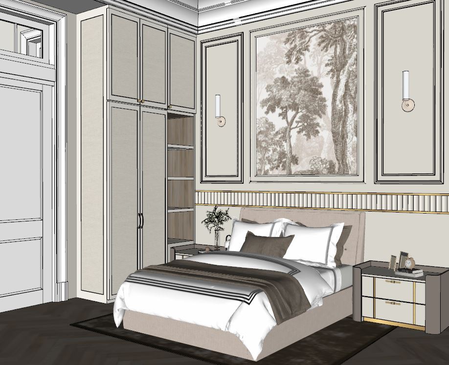create ultra realistic images without changing any structure shape design or material do not resize the jpeg do not change the color material or shape add indirect light spot light to the ceiling use soft light brown herringbone wood texture for the floor add indirect light to every shelves