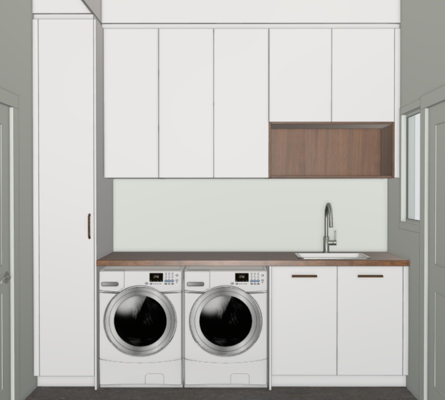 add natural lighting through window add laundry decor to suit add someone putting clothes in the washing machine