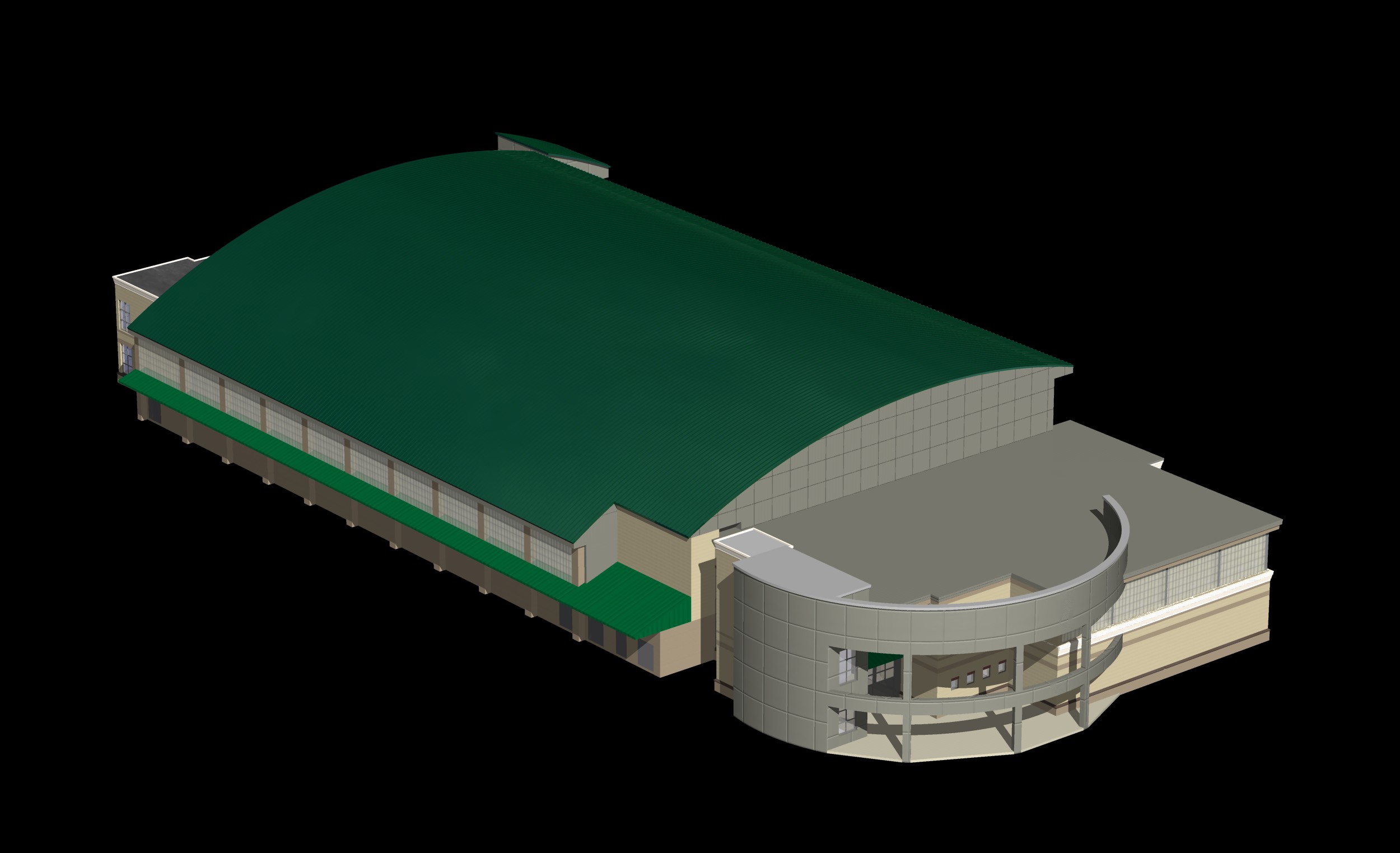 contemporary exterior shot building on flat farm land add a parking lot around it architecture
