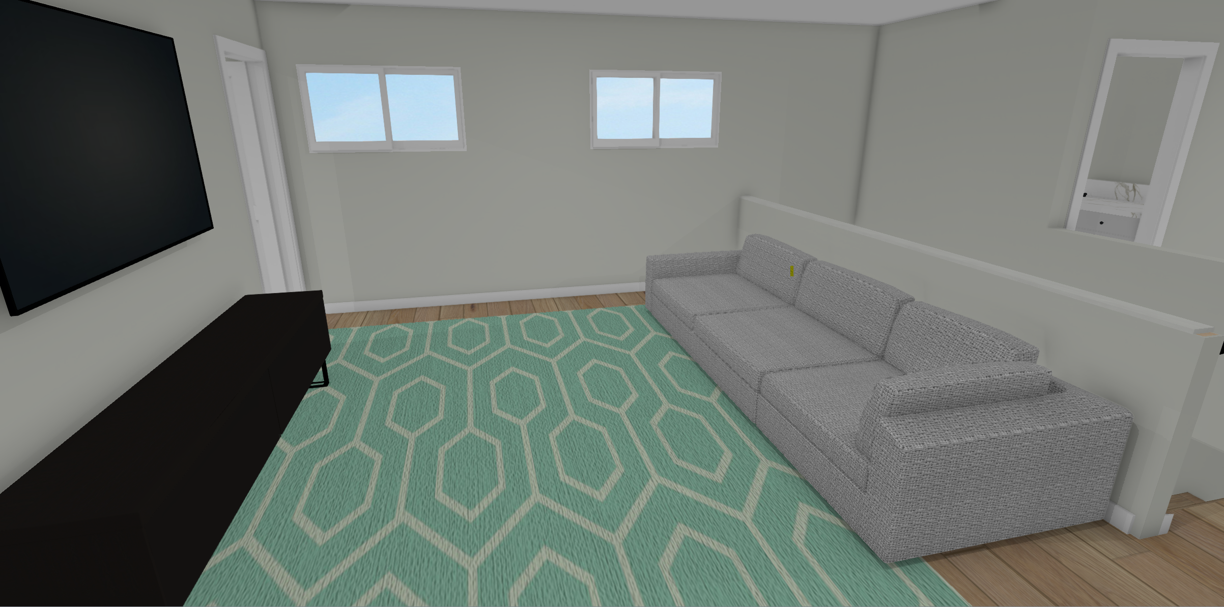 do not alter window size or location add modern hawaii home aesthetic add window treatment and coffee table