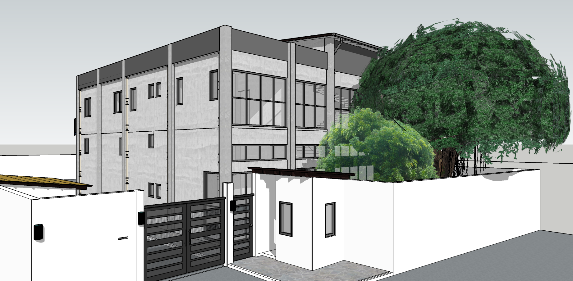create a photorealistic render of this exterior shot make the lighting bright and warm