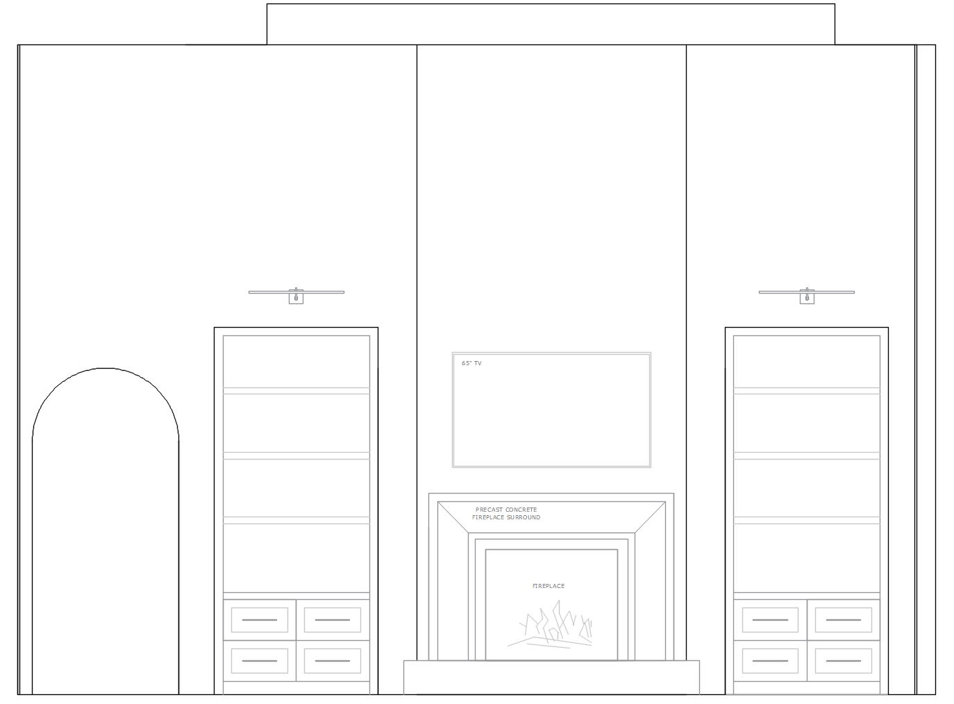 make this fireplace wall rendered in 3d light warm tones