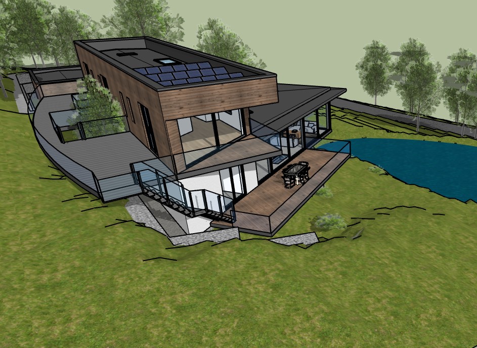 can you make into a high quality visualisation to show bespoke modern house overlooking scottish loch