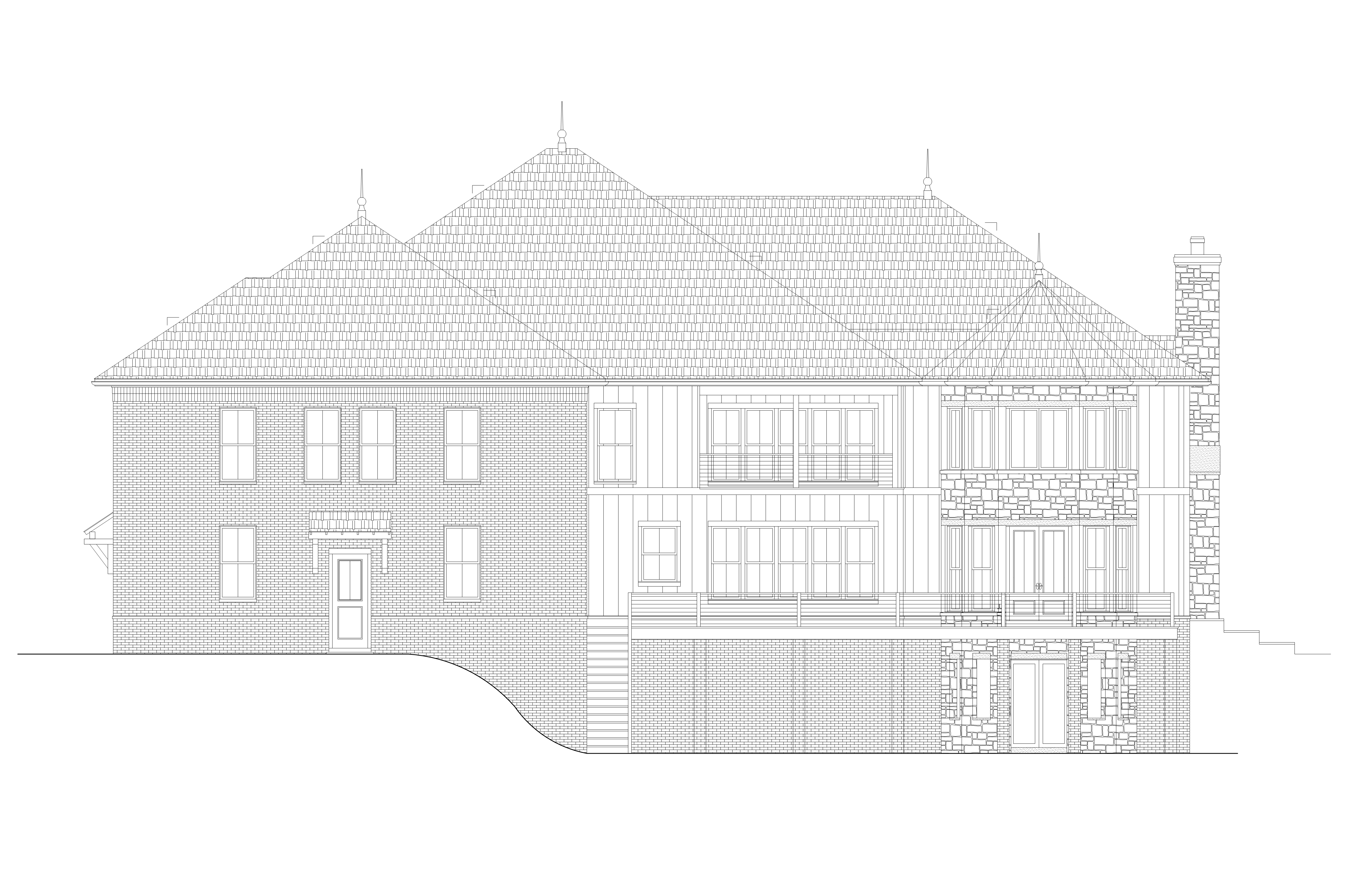 render a majestic stone mansion with intricate architectural details set in a serene countryside atmosphere the stone facade should be a mix of warm cream brick stone board and batten siding and light gray tones creating a natural and inviting appearance the roof is a deep slate gray harmonizing with the stonework windows are framed in black adding a touch of elegance surround the mansion with lush greenery vibrant flowers in a spectrum of purples and yellows and a clear blue sky with soft fluffy white clouds the overall atmosphere is peaceful and luxurious capturing the essence of classic elegance and charm