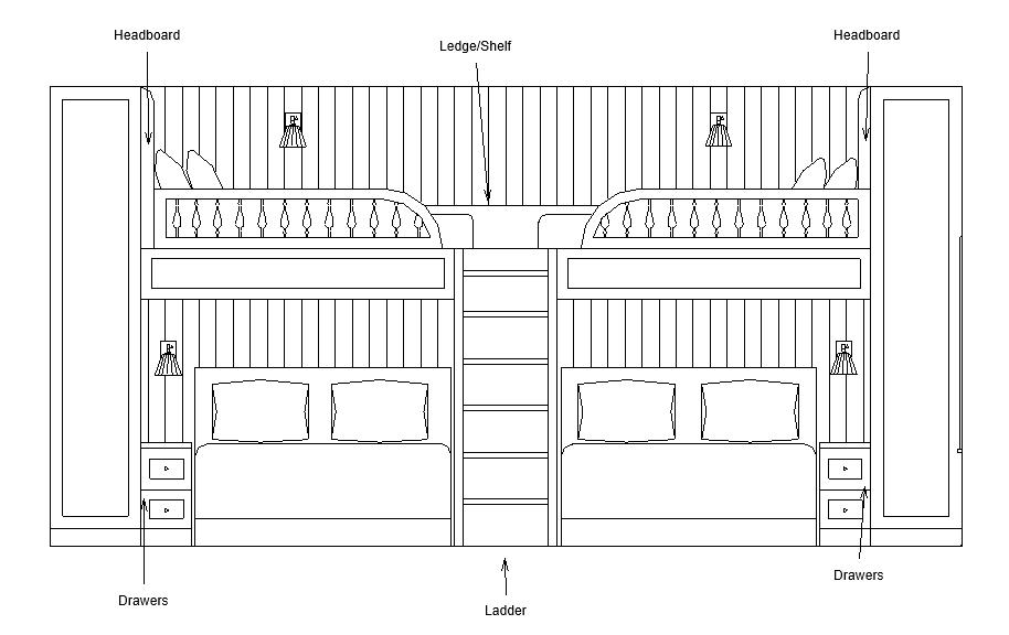 change paneling to be vertical remove sconce over bottom beds make bottom beds queen size