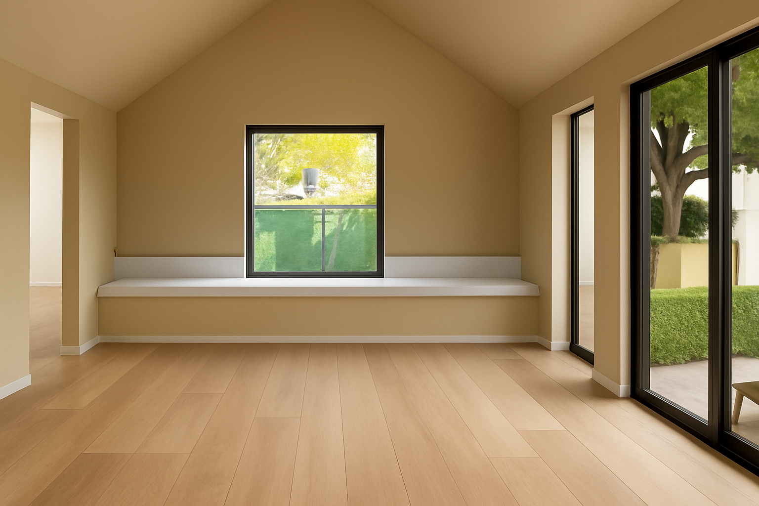 create a photorealistic 3d interior rendering of the open kitchen of a 2 5 room apartment strictly based on the architectural plan provided respect exact layout dimensions openings kitchen placement and spatial flow design the kitchen in a modern elegant minimalist and cozy style using light oak cabinetry or wood accents warm beige and off white finishes refined stone or quartz countertop soft indirect lighting matte black fixtures and contemporary clean lined design the kitchen should feel premium but understated functional and visually warm add realistic stools or dining connection if relevant to the plan while maintaining accurate scale and proportion photorealistic materials realistic reflections eye level perspective architectural visualization quality soft natural light