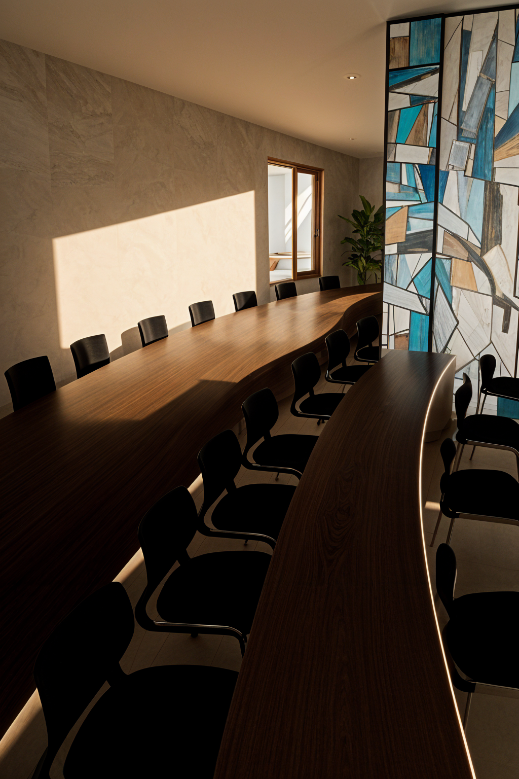 i want to see the big light removed light coming from the window some led lighting and the wall on the right side to be shown more like stained glass architecture