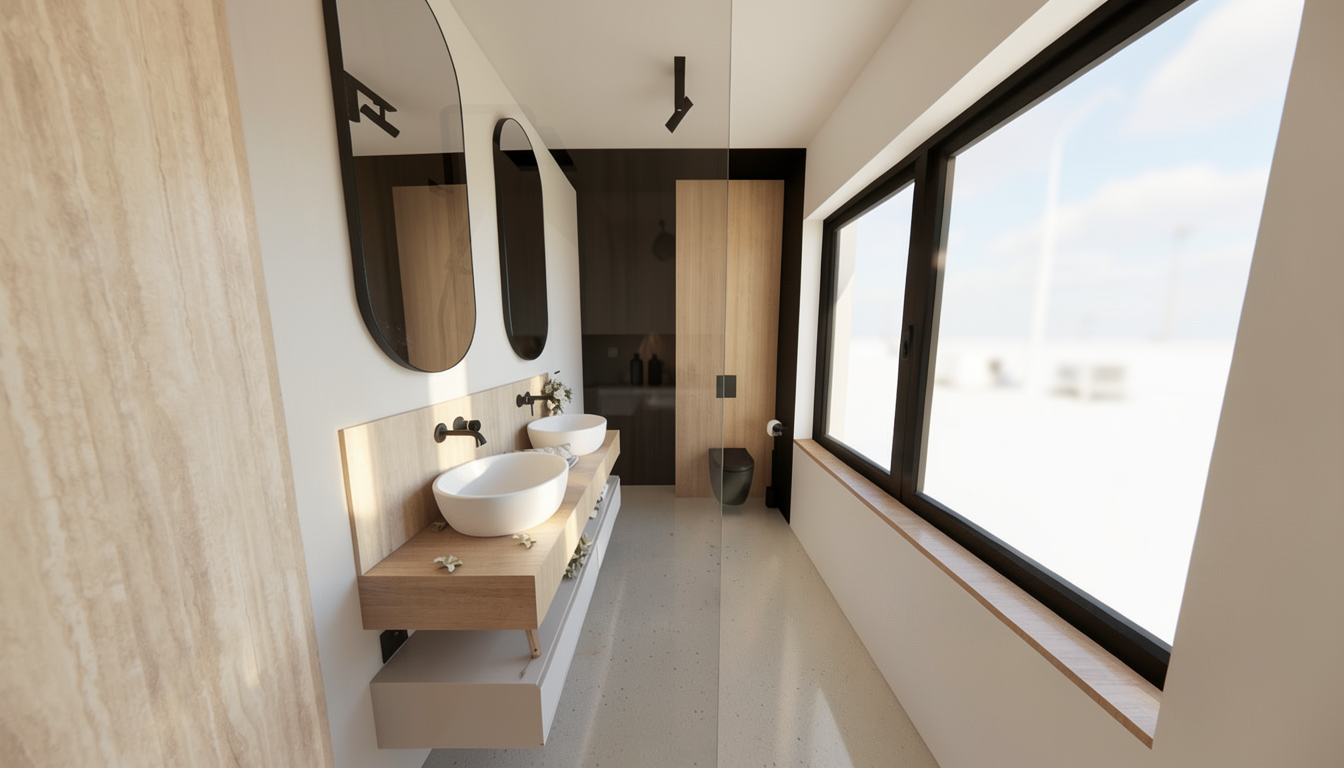 axonometric architectural illustration of a mountain resort building soft watercolor textures hand drawn aesthetic fine ink outlines muted earthy color palette terracotta roof tiles detailed timber window frames lush organic vegetation with pine trees and soft shrubs around the terrace atmospheric lighting paper texture background minimalist and clean