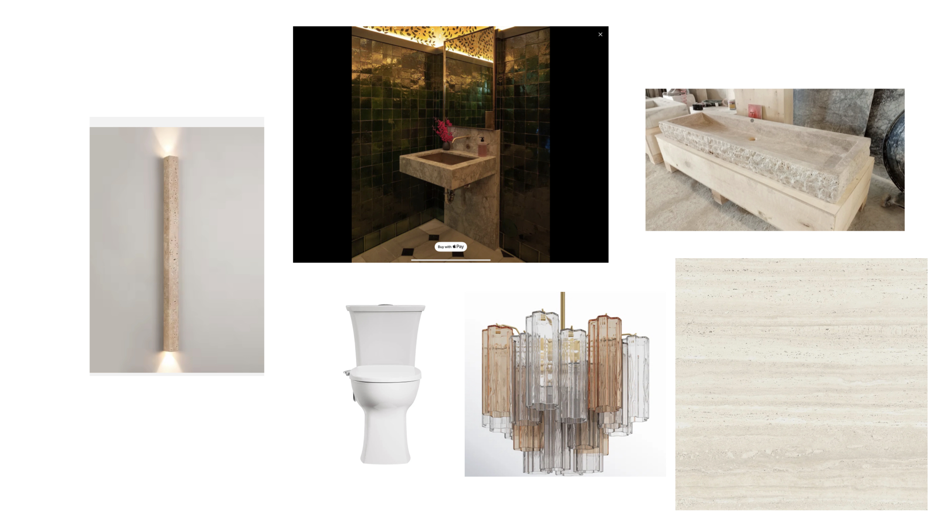 looking into the bathroom from a pocket door that is open room is 4 feet deep by 6 feet wide window is on the right side of the composition 36 x 54 2 ft off the ground celing has exposed beams sink wall and floor ate in 12 x 24 travertine tile sink is wall mounted travertine stone as in reference picture wall sconce is also travertine 1 ft fro celing is a plaster crown mounding with a led strip built in