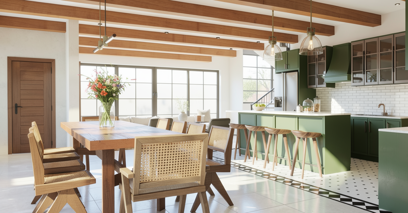 replace the border hardwood floors at the entry and the steps with polished cream porcelian large format tile keeping the hardwood transition at the arched opening
