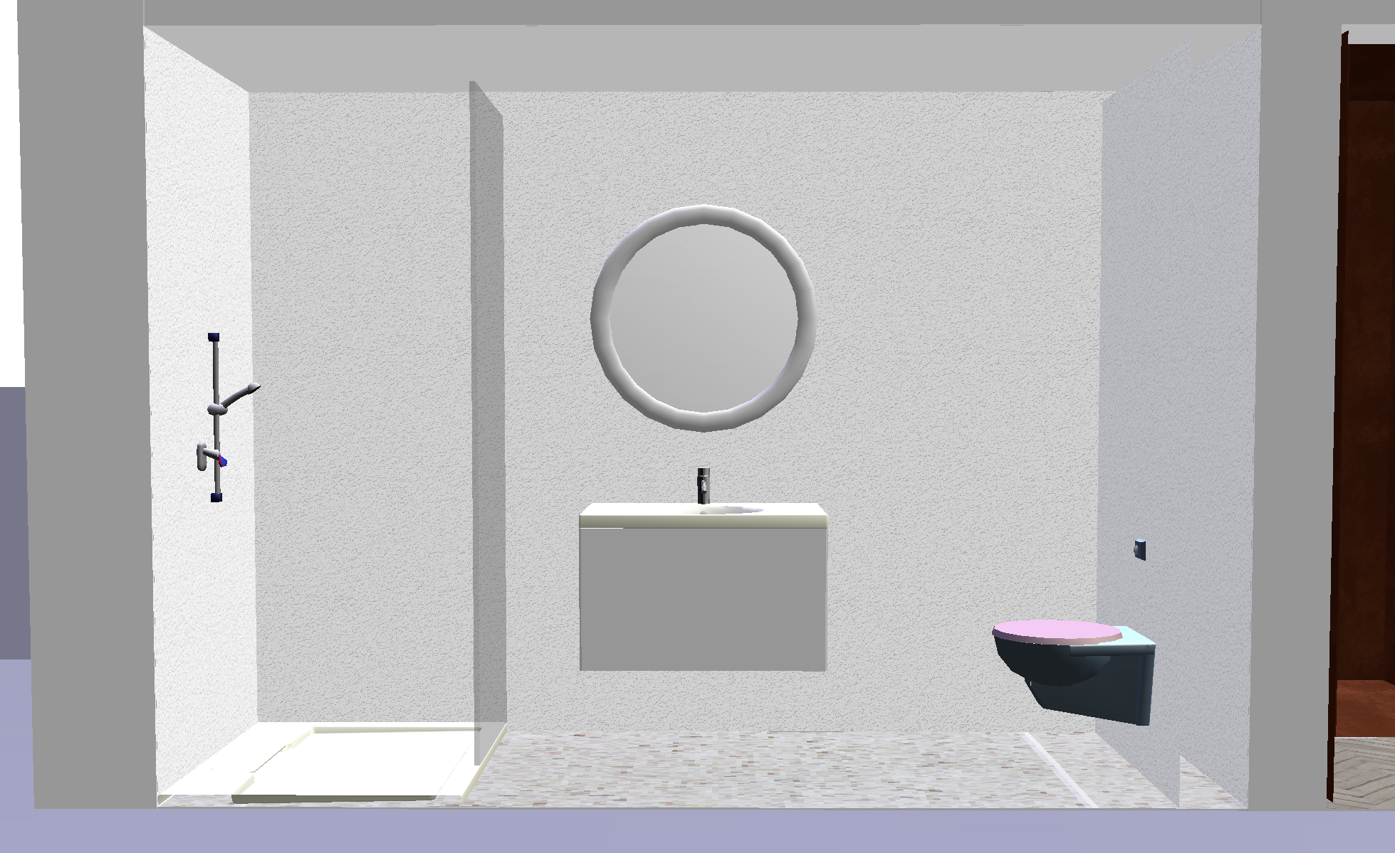genau dieses rendering berarbeiten fotorealistisches innenraum foto exakt dieselbe perspektive und kameraposition wie das hochgeladene referenzbild 100 identische raumgeometrie exakt gleiche m belanordnung weiches nat rliches tageslicht leicht schr g einfallende sonne raum k nstlich ausleuchten sanfte realistische schatten blickrichtung ist nach osten sonnenlicht kommt von s den realistische materialien echte holztexturen stoff mit leichten gebrauchsspuren hochwertige oberfl chenreflexionen lavabo aus marmor collemandina grigio in braungrau dunkel dahinter eine vola wandarmatur edelstahl vollkommen rahmenloser und hinterleuchteter spiegel links neben dem lavabo ist die dusche thermostatmodul axor select mit stabhandbrause und grosse wandtellerkopfbrause w nde in der dusche und boden collemandina grigio in braungrau alle anderen sichtbaren w nde sind sichtbeton toilette ersetzen mit moderner toilette vignoni vertigo wandh ngend in farbe sabbia toilettenpapierhalter an der wand sehr moderner minimalistischer look nat rliche farbwiedergabe golden hour feeling das bild muss wie eine professionelle fotografie aussehen es soll ein echtes und reales foto sein canon eos r5 35 mm festbrennweite f 2 8 hyperrealistisch dslr qualit t raw aufnahme 8k aufl sung extrem scharf perfekte tiefensch rfe professionelle architekturfotografie