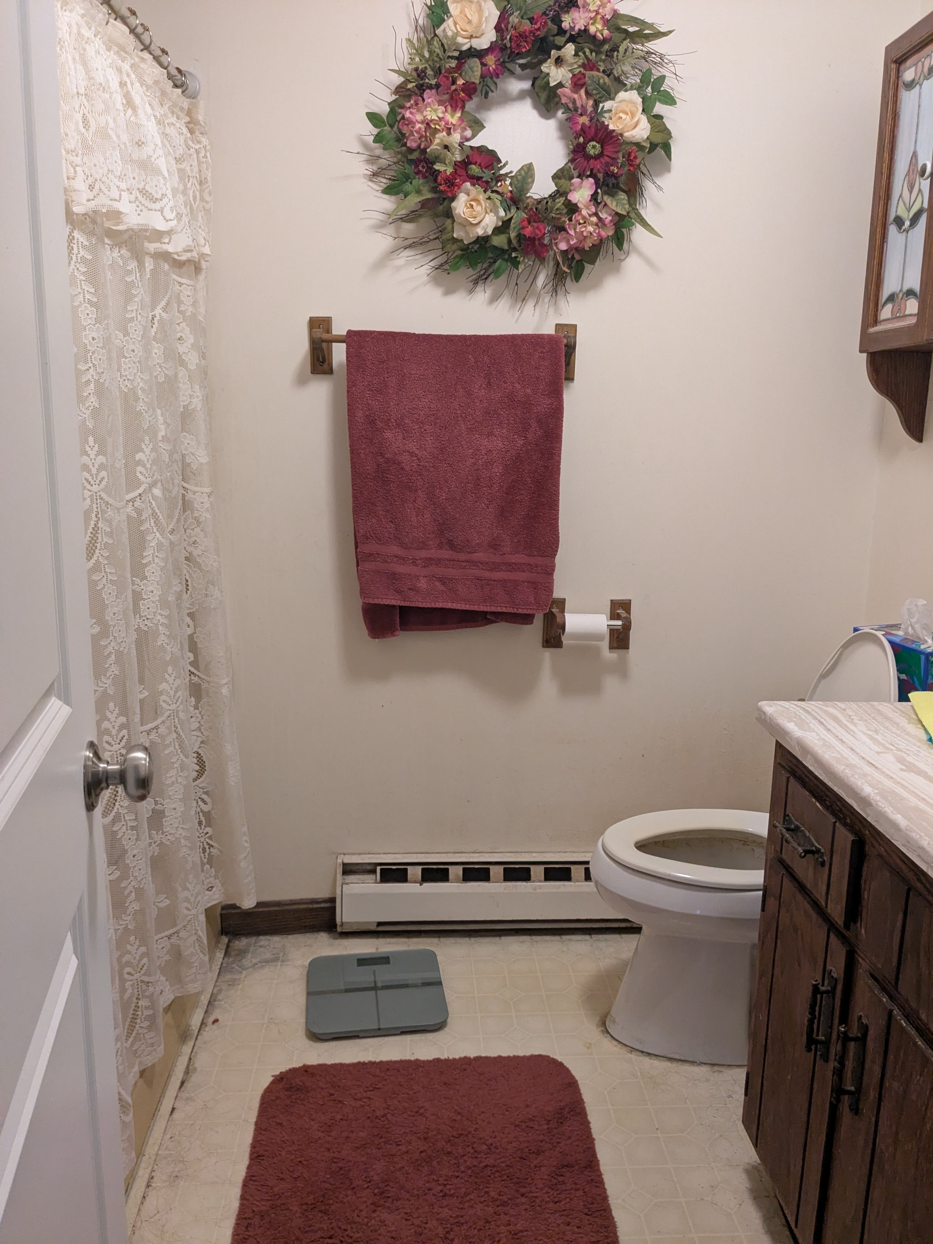 edit this photo of a bathroom to a remodeled bathroom with the same layout but using the elements in this mood board