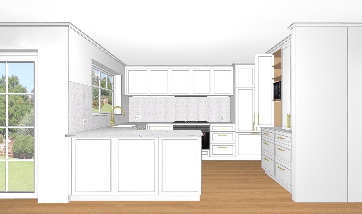 put 3 stools to back of island put someone standing at the sink washing dishes natural light coming in from the window add benchtop decor like a vase chopping board etc 1 x pendant above the island bench area